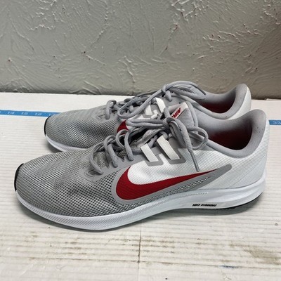 Nike Men's Size 11 Downshifter 9 Shoes Wolf Grey/University Red-White AQ7481-006