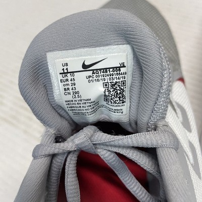 Nike Men's Size 11 Downshifter 9 Shoes Wolf Grey/University Red-White AQ7481-006.