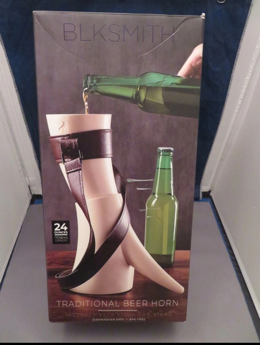BLKSMITH Drink like a Viking TRADITIONAL BEER HORN w/ Neck Strap & Stand