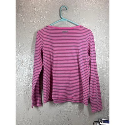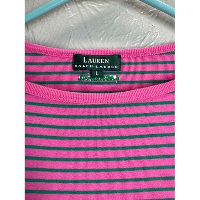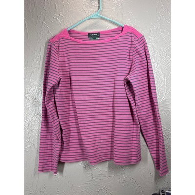 Lauren Ralph Lauren Top Women's Pink Striped Preppy Long Sleeve Size Large
