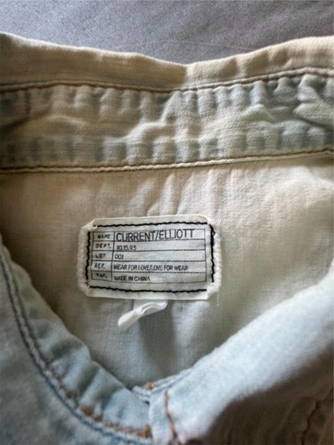 This Current Elliot sleeveless cotton safari shirt is in pre-owned condition with no signs of damage of any kind aside from normal wear. It features: