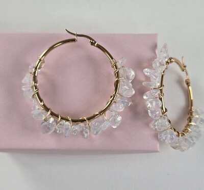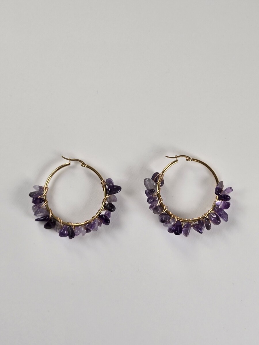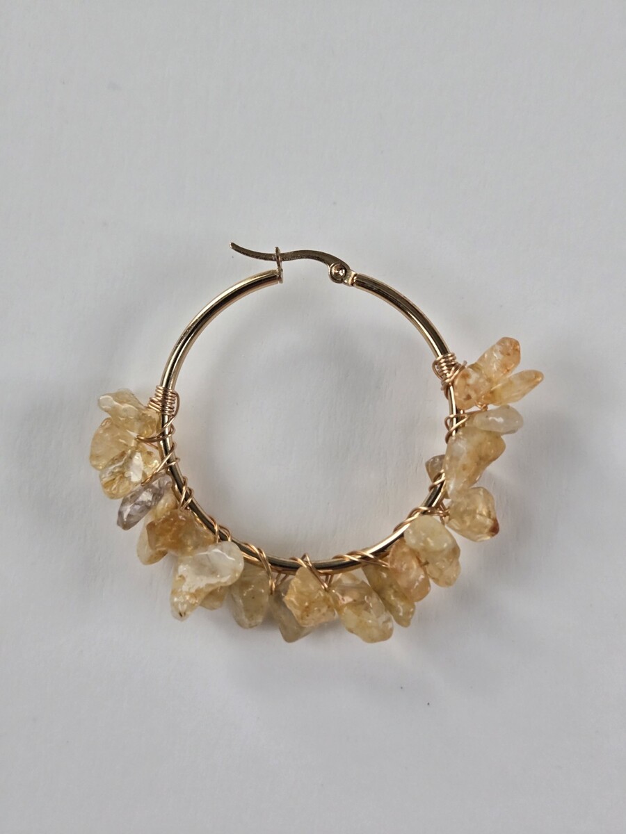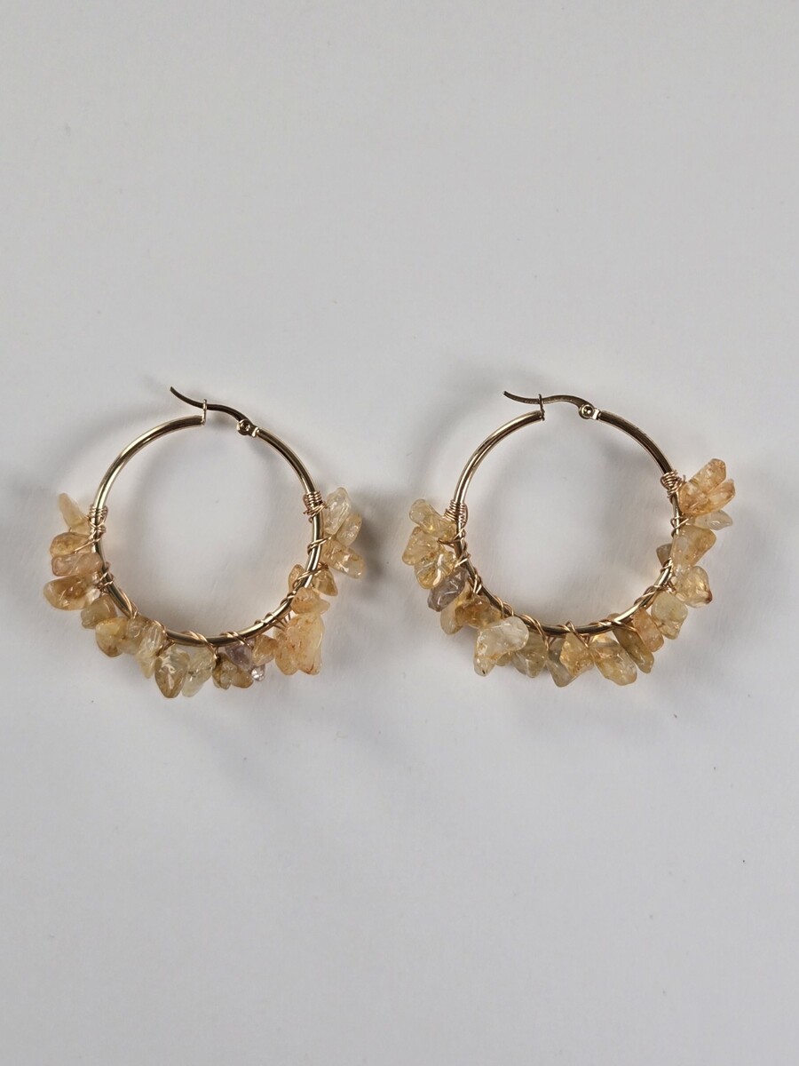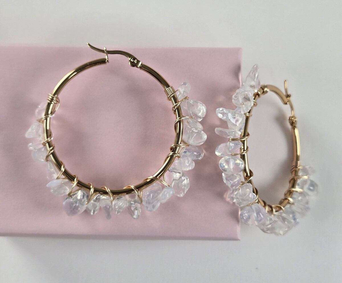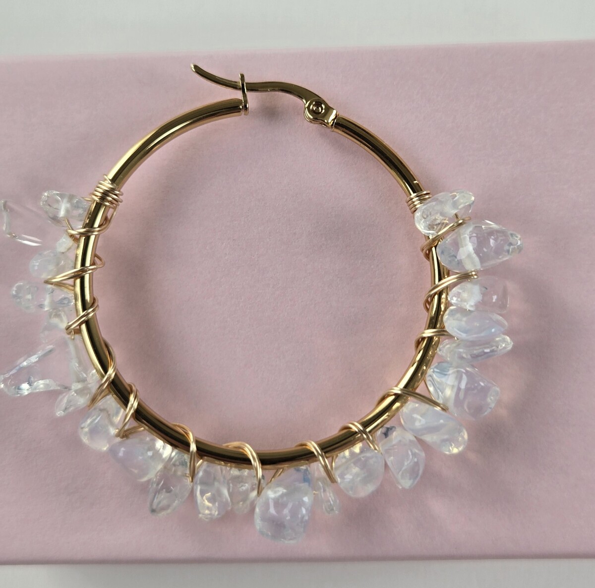 Wire Wrapped Gemstone Hoop Earrings | Bold Crystal & Gold Statement Jewelry