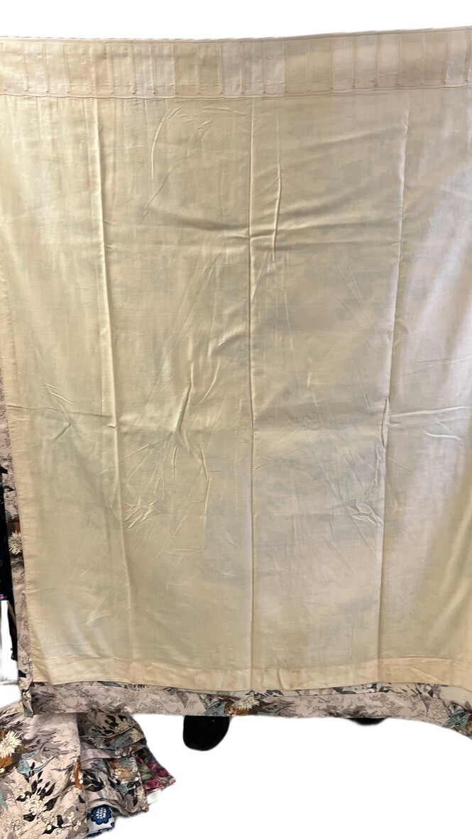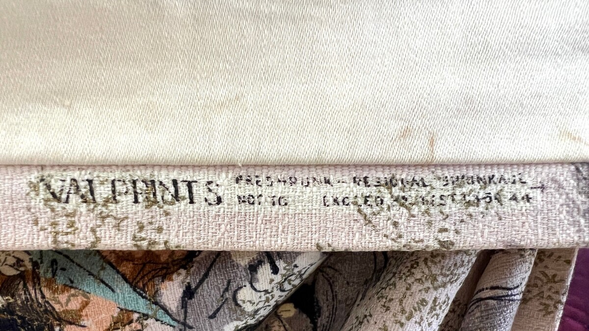 This is barkcloth drapery fabric printed with a floral pattern - the selvedge reads ?Design Wingate A Tower Vat Print Preshrunk?. . The fabric has a medium weight barkcloth Momie weave. They are lined. They are in amazing condition, and though as found, there is the tiniest bit of fade lines in places. It is very subtle and cant be seen when they are hung, or barely when they are not.I tried to show it in the last photo but it is really hard to capture.