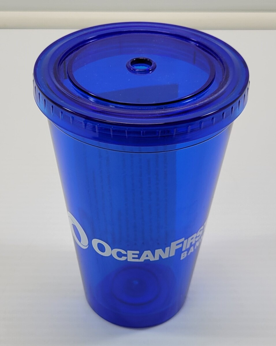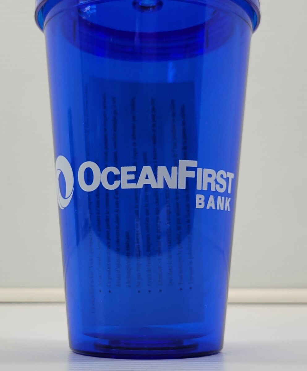 MN) Ocean First Bank Blue Plastic Promotional Tumbler Cup