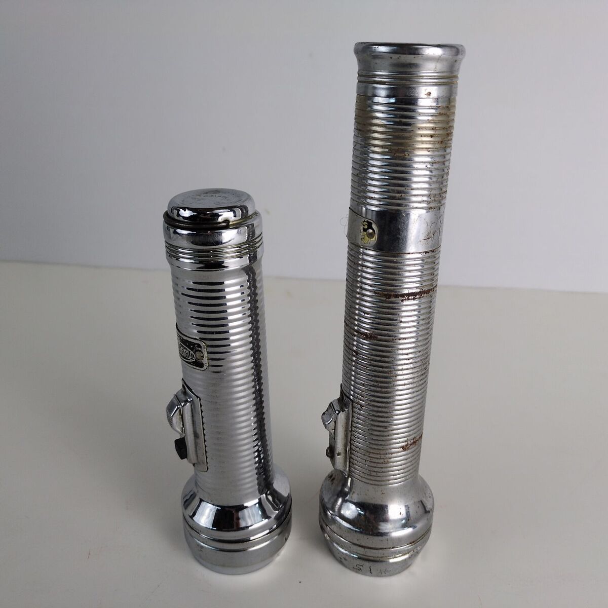 Pair of Vintage Chrome Flashlights, 9.5" Ray-O-Vac 7" Tru-Test Supreme