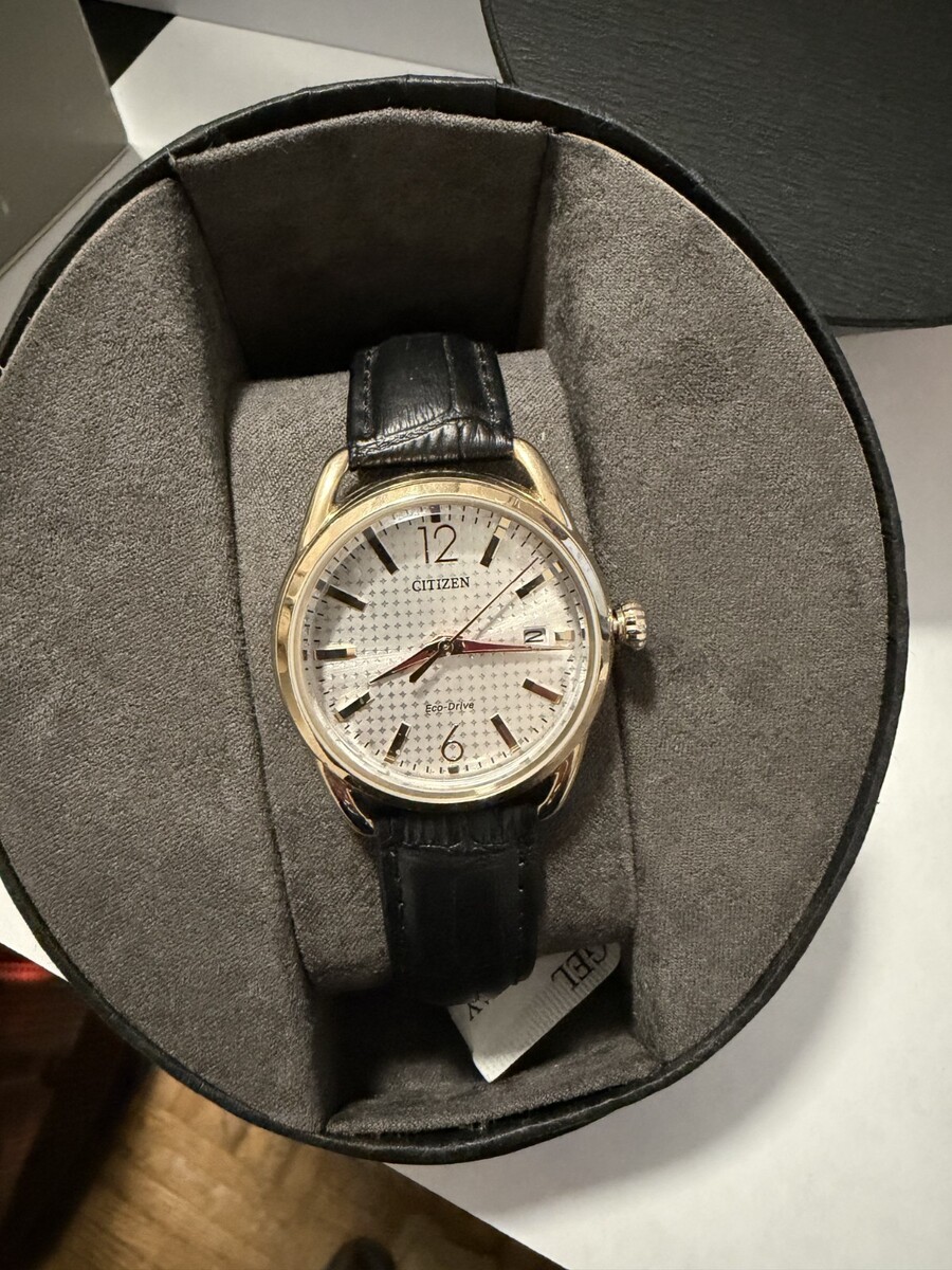 Citizen Eco-Drive Womens FE6083-13E Black Dial Black Leather band Watch