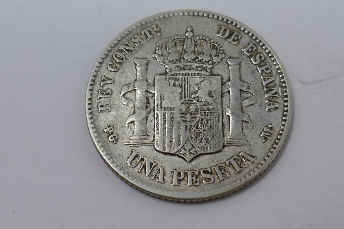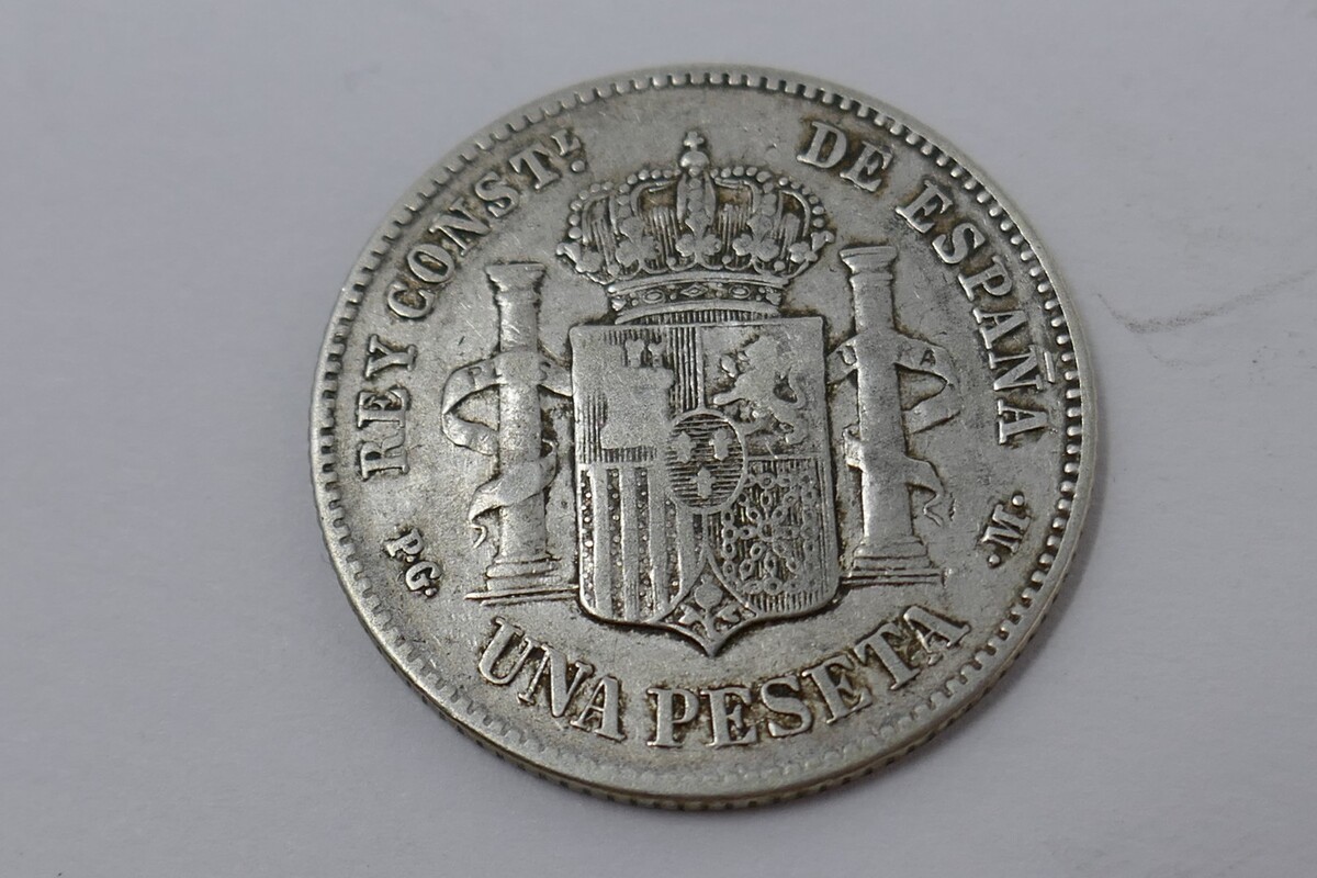 The 1891 Peseta Silver Coin is a valuable and historical piece of coinage from Spain. Featuring a portrait of Alfonso XIII and made of 0.835 silver, this coin holds a significant place in Spanish numismatic history. Dating back to 1891, this coin is part of the world's coin collection, making it a desirable item for collectors and enthusiasts of coins and paper money.
