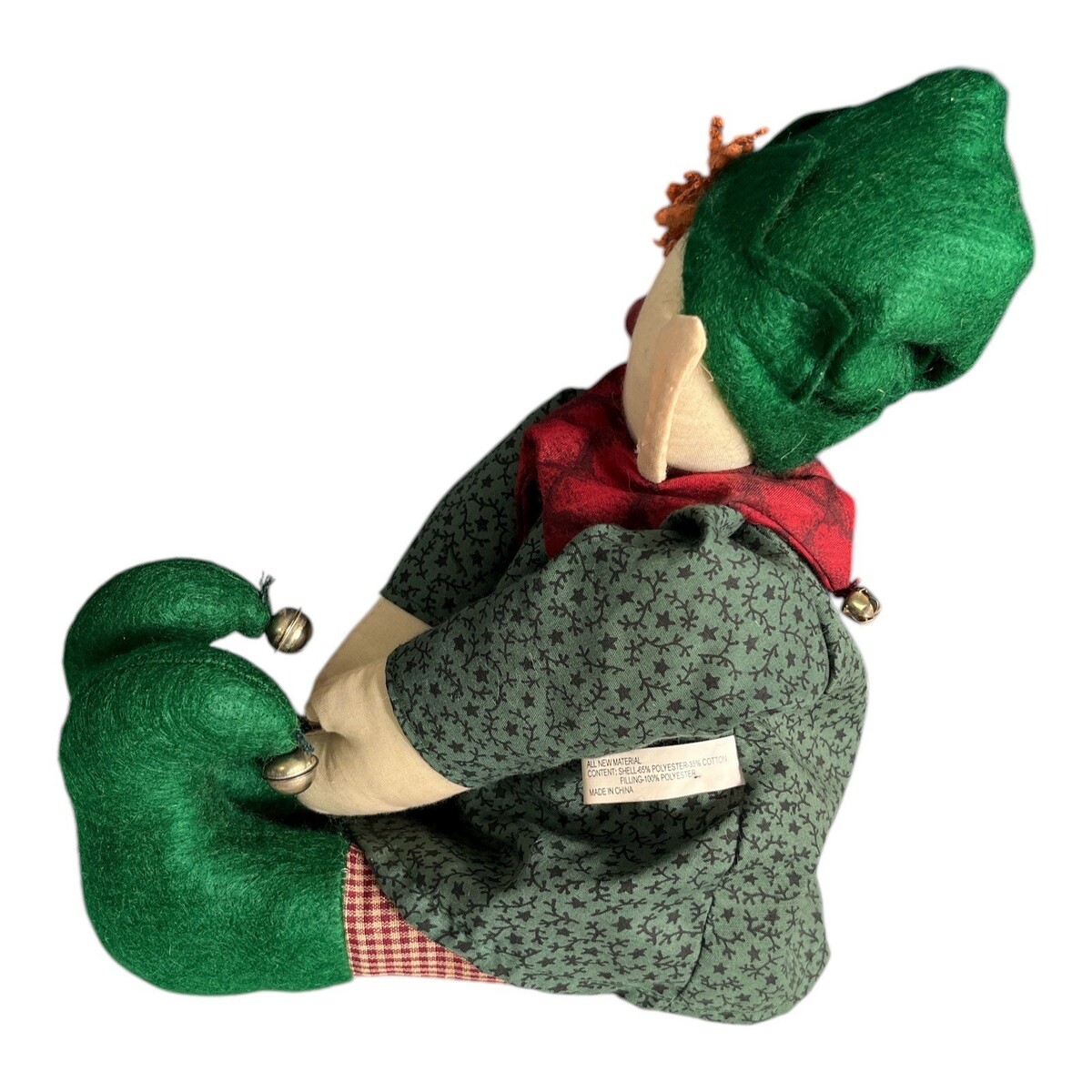 Terry?s Village Christmas Elf Plush Doll Green Outfit Red Scarf Bells Hook Loop Shoes Vintage 1990s