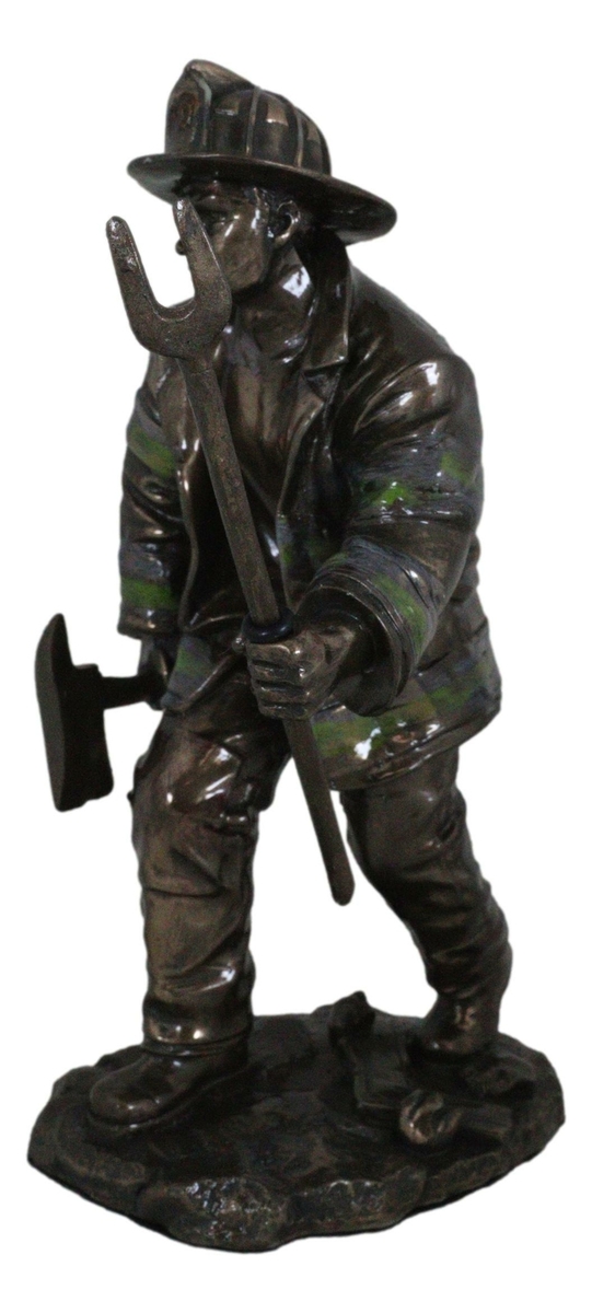 Ebros Fireman With Fire Axe And Fork Statue 7.25"Tall In The Line of Duty Fire Rescue