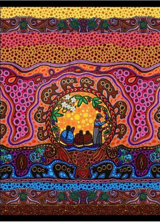 24" X 44" Panel Family Circle Generations Hand Painted Look Multi Elizabeth Studios Cotton Fabric Panel (39004MULTI)