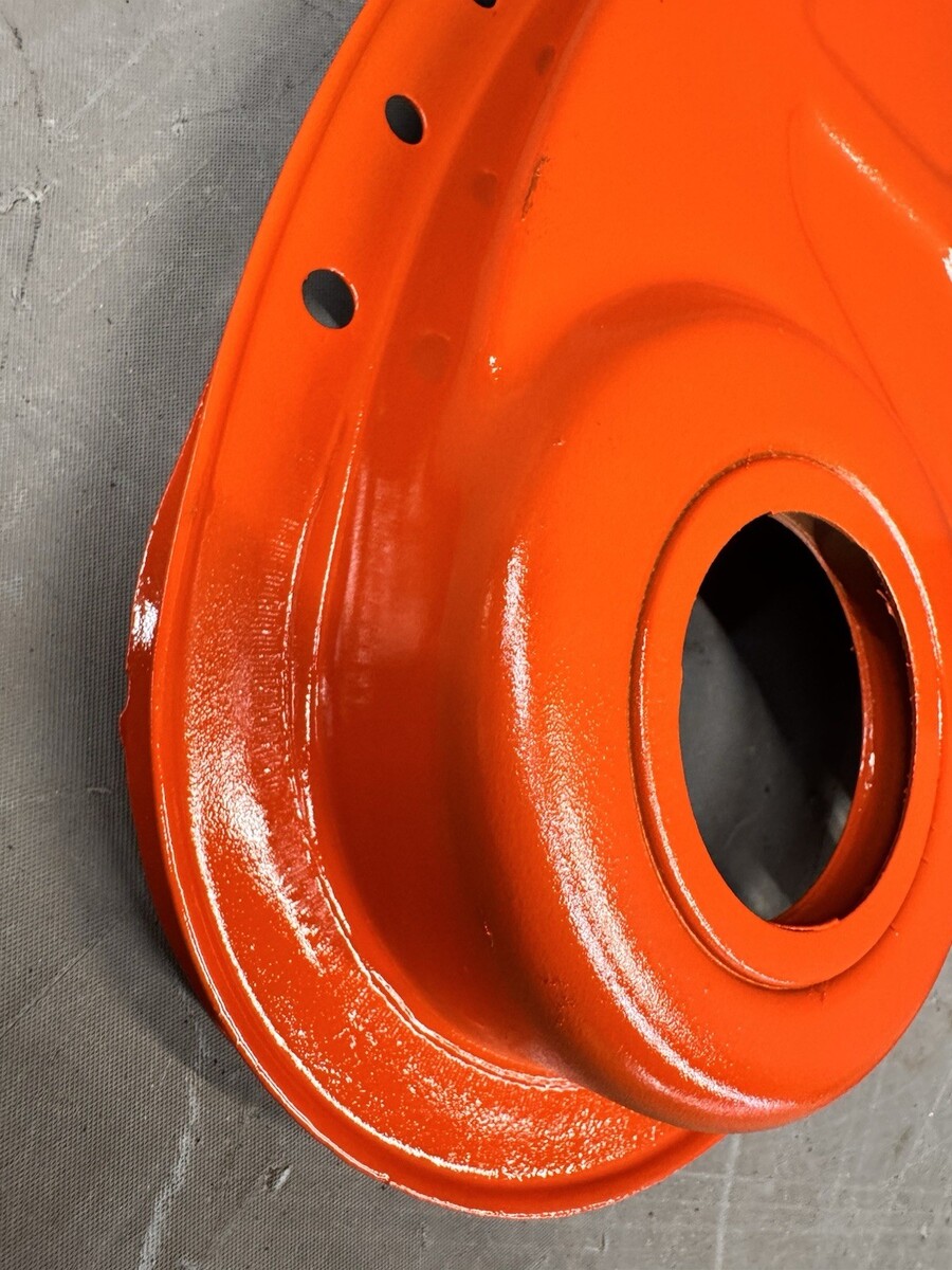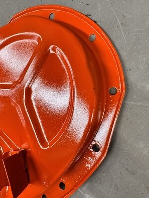 This has been sandblasted to insure there was no rot, then primed and coated in a high heat Chevy orange engine paint