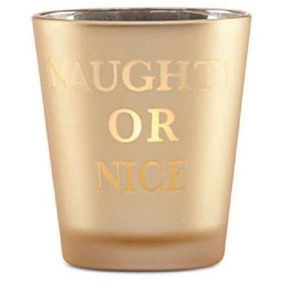 Lenox Holiday 4" Gold Naughty or Nice Glass Votive Candle Light New in Box