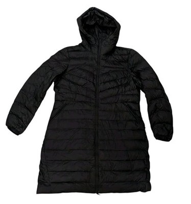 This is a woman's Lands End long packable puffer coat. Parka style. Hooded. Size medium petite. My hair is approximately 21 in flat across the chest when zipped. EXCELLENT CONDITION