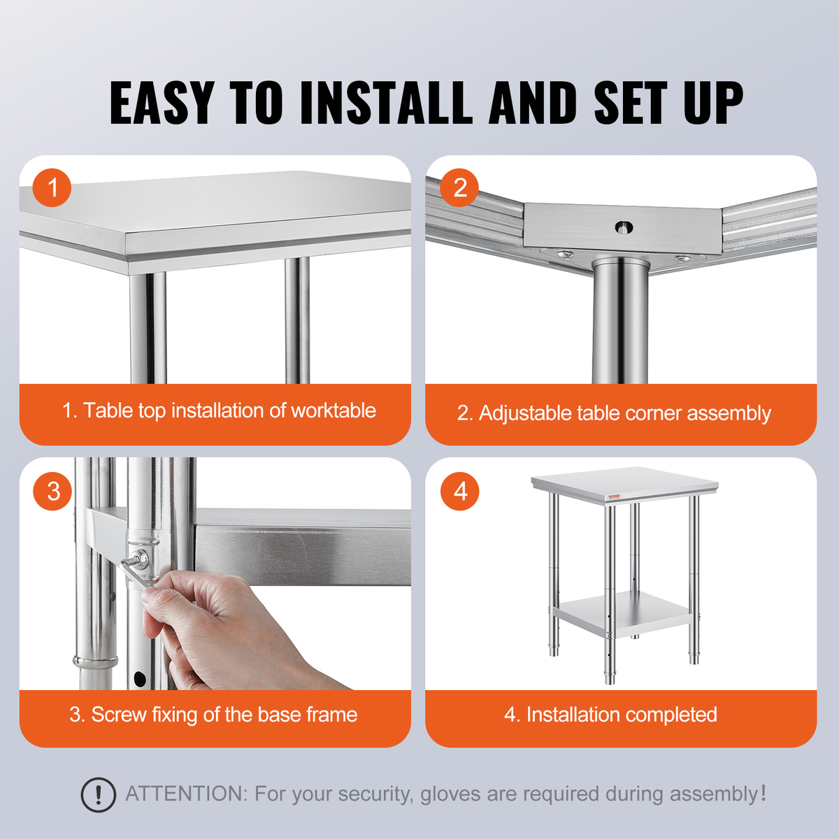 VEVOR Stainless Steel Adjustable Work Table 24x24x31 in, 700 lbs Load Capacity