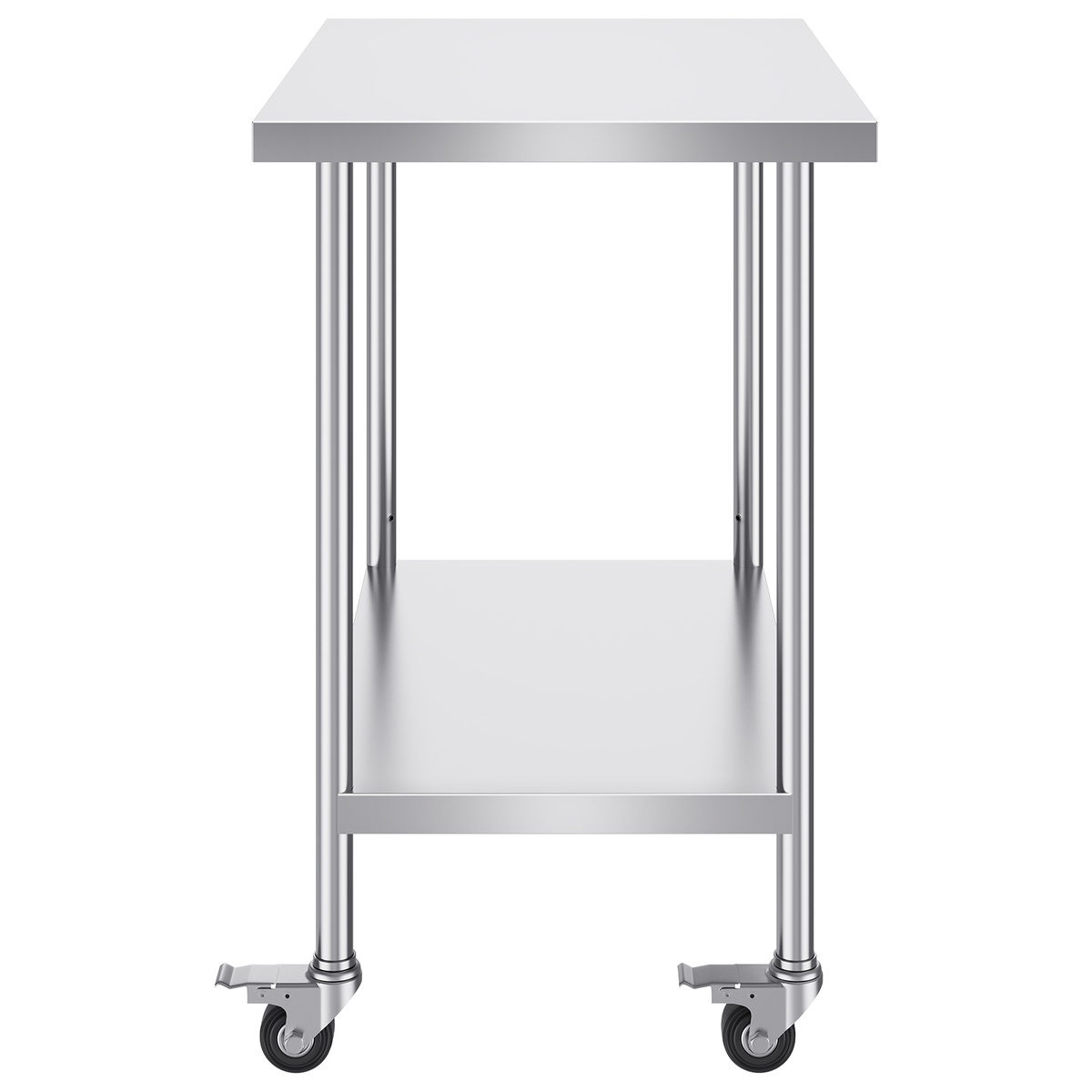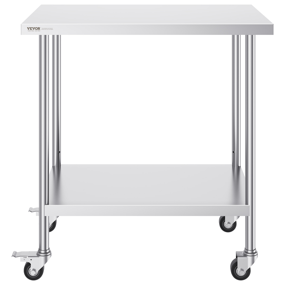 VEVOR Stainless Steel Adjustable Work Table 24x36x38 in, 2 Storeys with 4 Wheels
