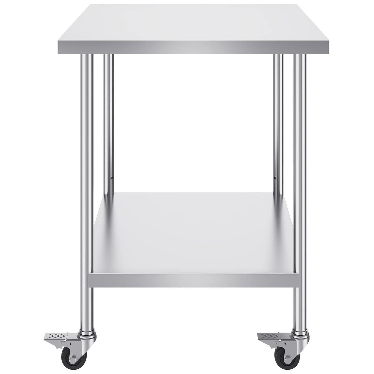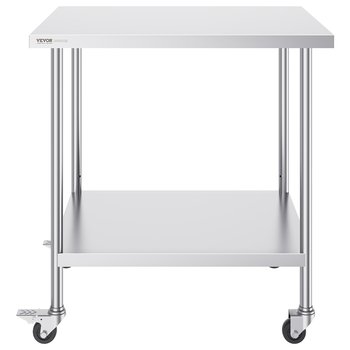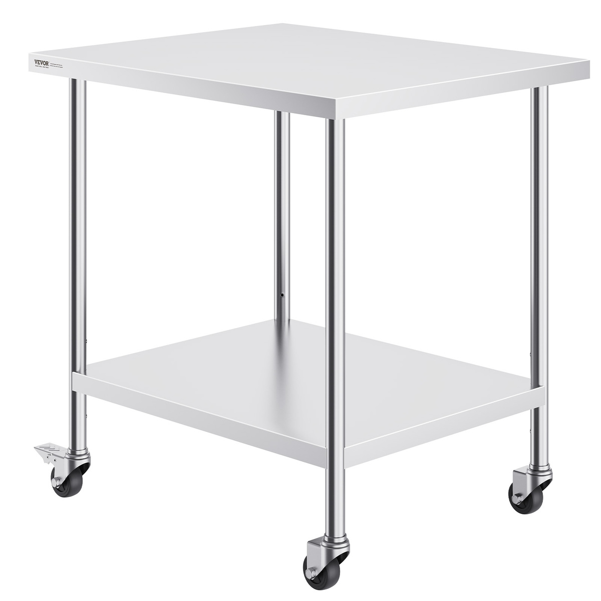 VEVOR Stainless Steel Adjustable Work Table 30x18x38 in, 2 Storeys with 4 Wheels