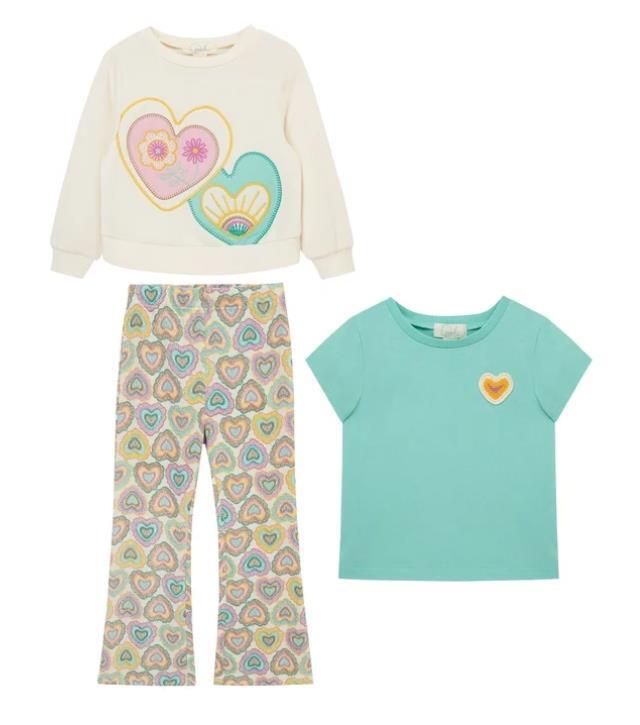 Peek Girls Boys Sweatshirt T-Shirt Flare Pants Blue Multicolor Hearts