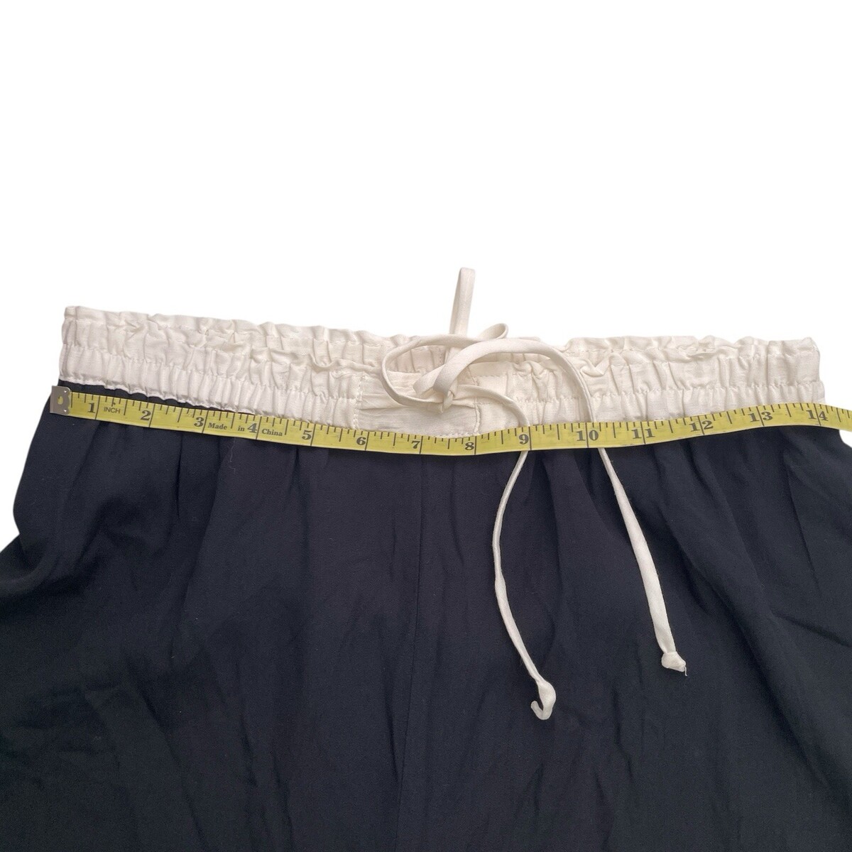 Waist in in a contrasting white. Lined for a smooth silhouette.