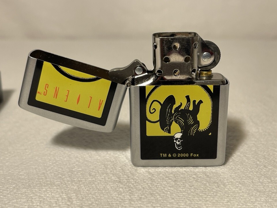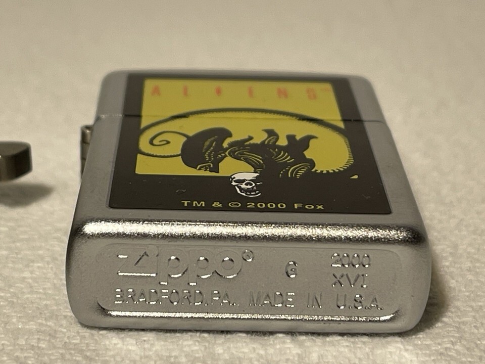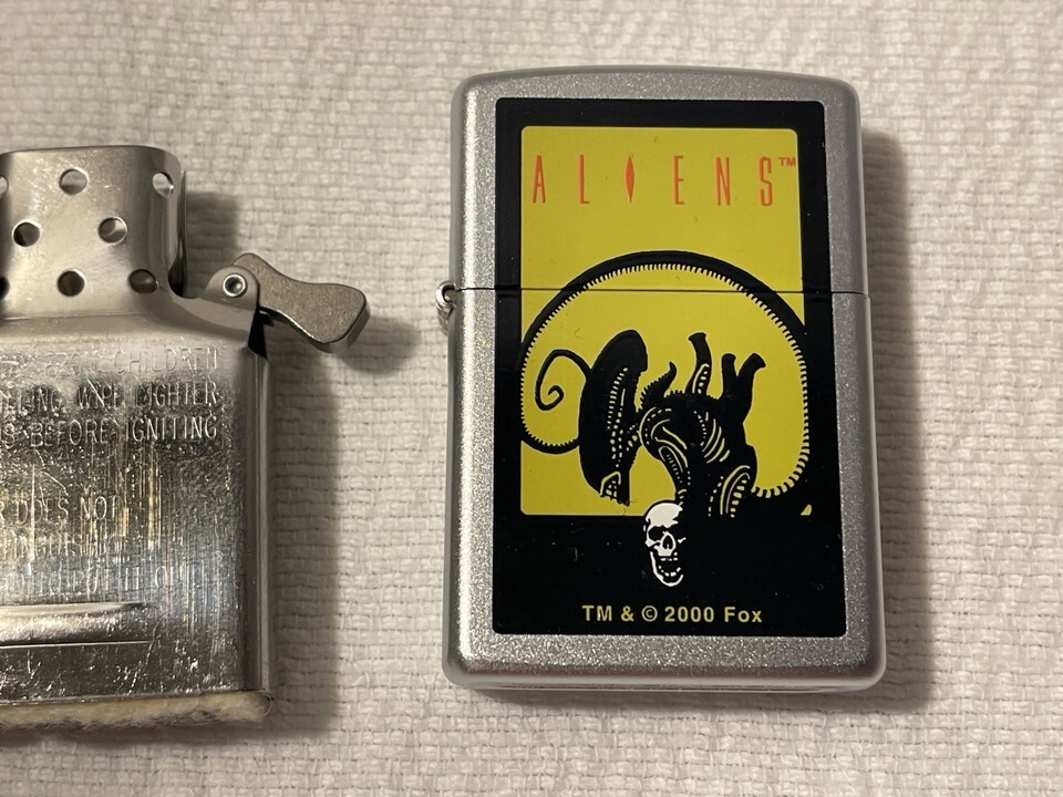 New RARE! GENUINE Zippo Lighter ALIENS XENOMORPH MOVIE FOX Satin Chrome 2000