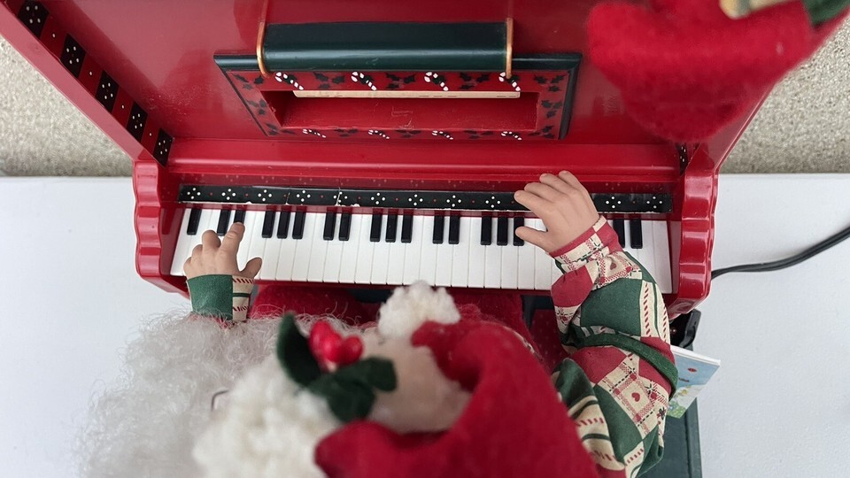 See Video Holiday Creations Animated Sing A Long Santa with Cassette Player VTG