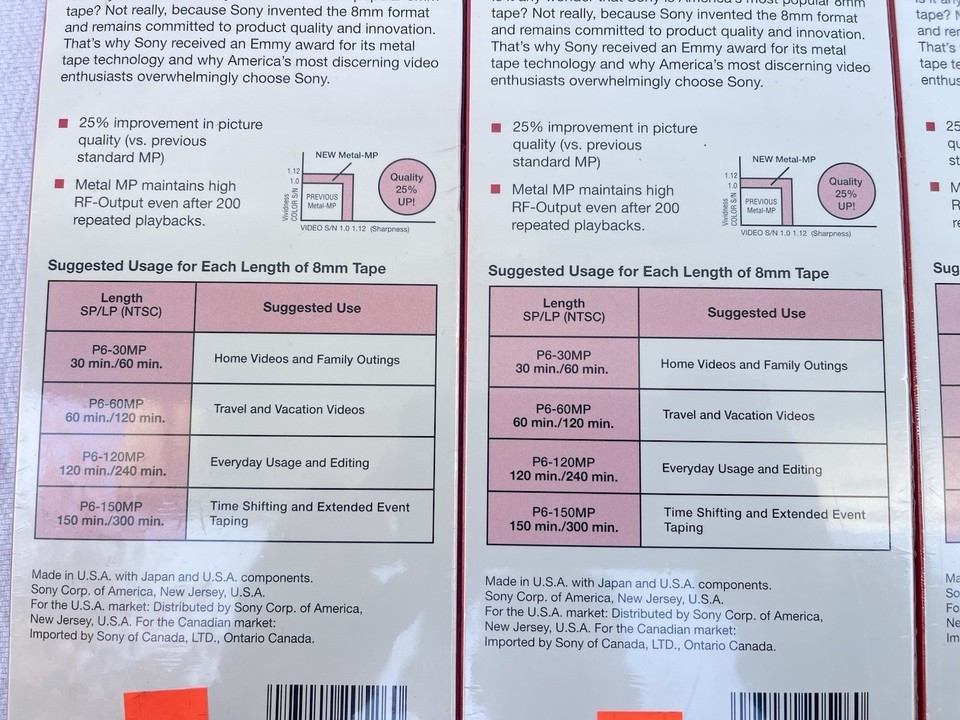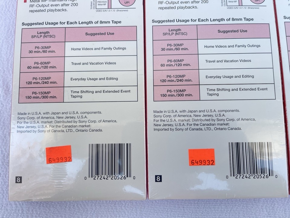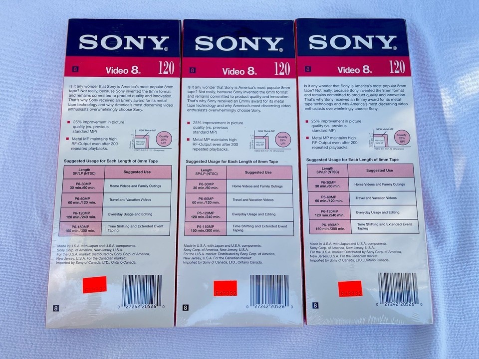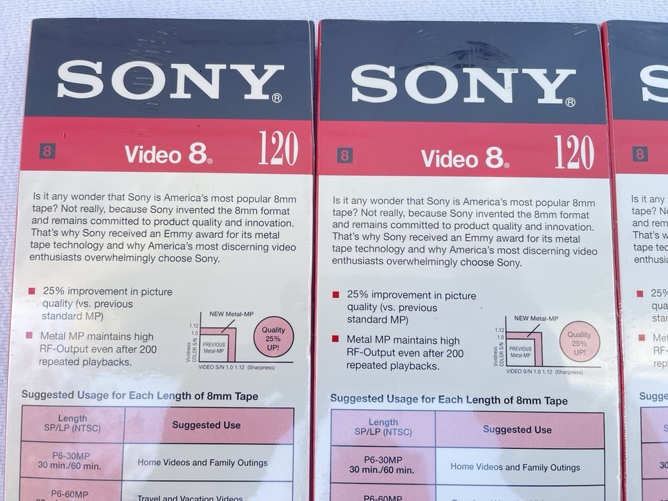 Lot Of 3 Sony 8mm Video Metal Cassette P6-120MP 120 Minute 4 Pack NEW SEALED