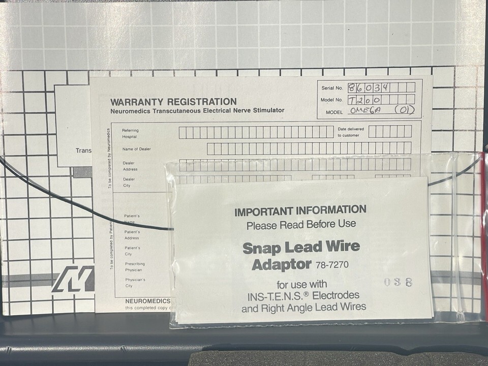 Neuromedics Electrical Neurostimulator Electric Nerve Stimulator Omega T200. Condition is New. Shipped with FedEx Ground or FedEx Home Delivery.