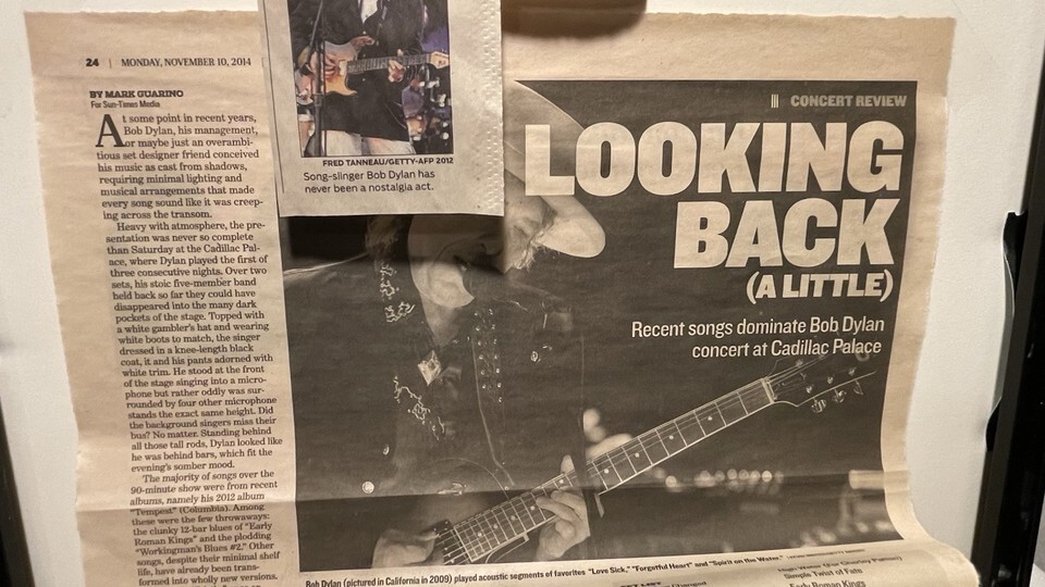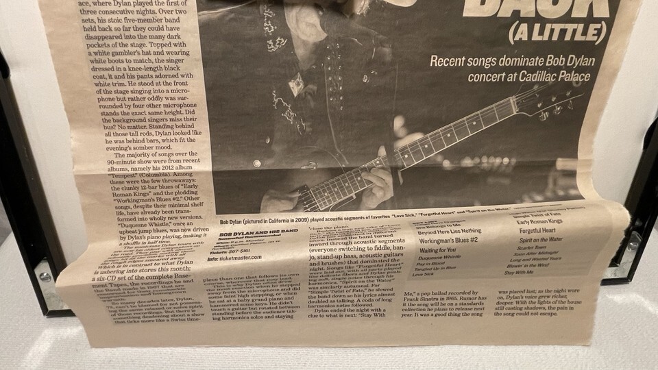Framed Bob Dylan And His Band Nov. 8-10 2014 Concert Poster/Ticket & Newspapers