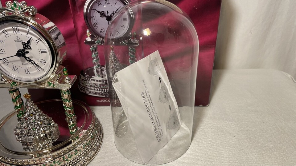 Wallace Silversmiths Musical Holiday Clock 12 Songs Glass Dome