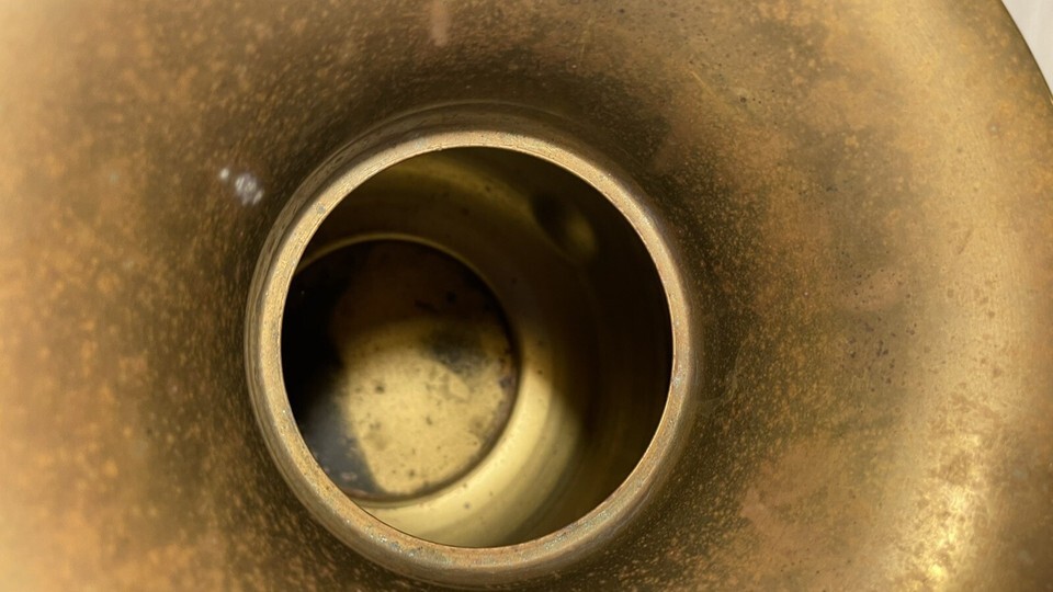 Antique BRASS SPITTOON "UNION PACIFIC R.R." Double-Sided EMBOSSED RAILROAD LOGOS. Condition is Used. Shipped with UPS Ground.