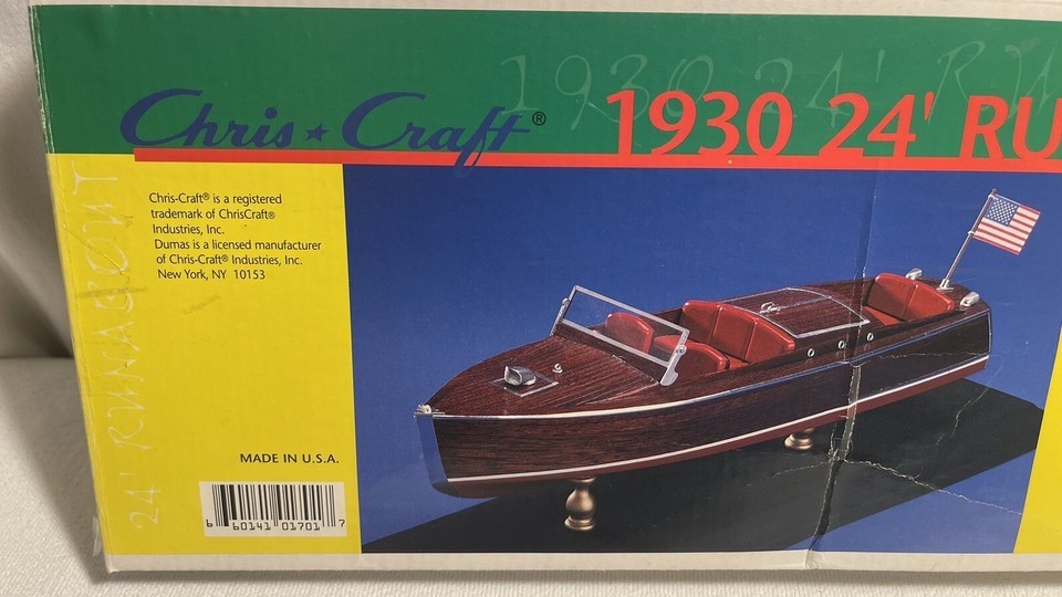 This DUMAS 1930 Chris Craft 24' Runabout Kit#DUM1701 is a great addition to any toy or model collection. With its brand being Dumas, you can be assured of its quality. The boat type is a runabout, and its model number is #DUM 1701. Its year of manufacture is 1930, which makes it a classic piece that any model enthusiast would appreciate.