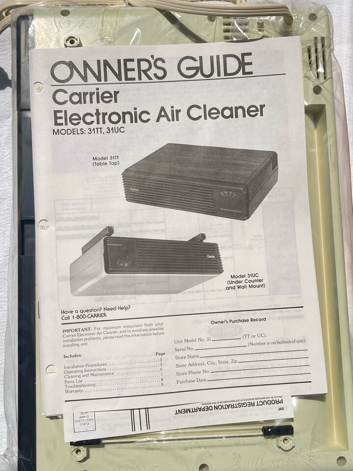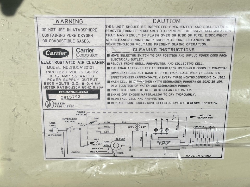 Electronic Air Cleaner By Carrier Model 31UCA120101 4-Way Air Cleaner System