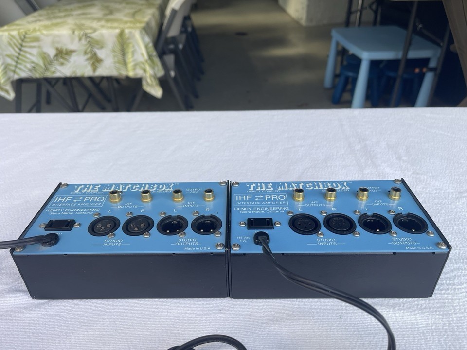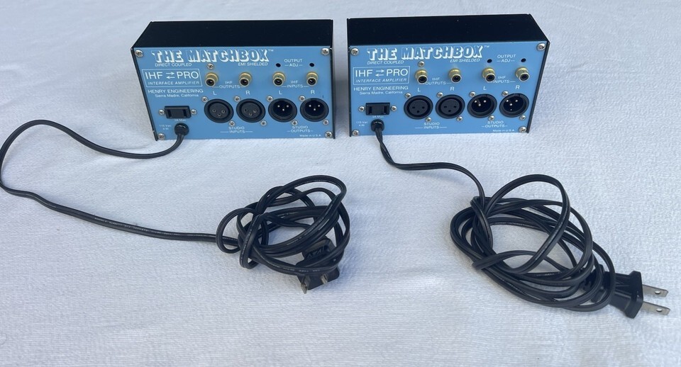 The Lot 2 Henry Engineering The Matchbox II IHF-PRO Stereo Level Interface Amp is a high-quality audio equipment designed for professional musicians and audio engineers. This Stereo Level Interface Amp allows for connecting and balancing audio levels from various sources, providing a clean and clear sound output. With the reputable brand of Henry Engineering and the specific model of The Matchbox II, users can expect top-notch performance and reliability for their audio production needs. Ideal for live performances or studio recording sessions, this interface amp is a versatile and essential tool for achieving pristine sound quality.