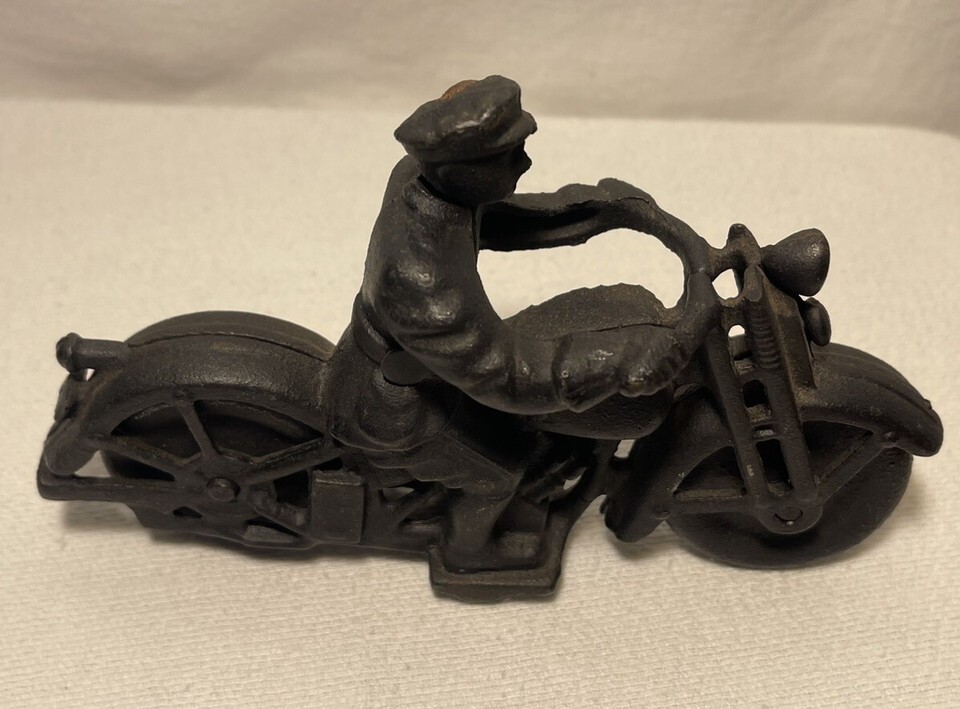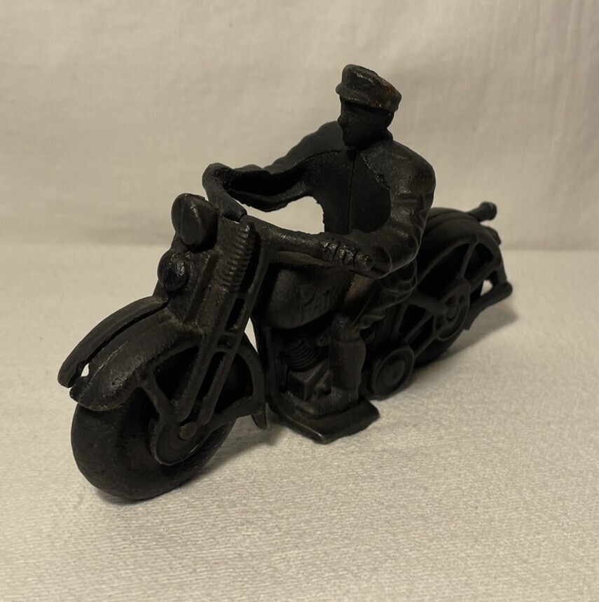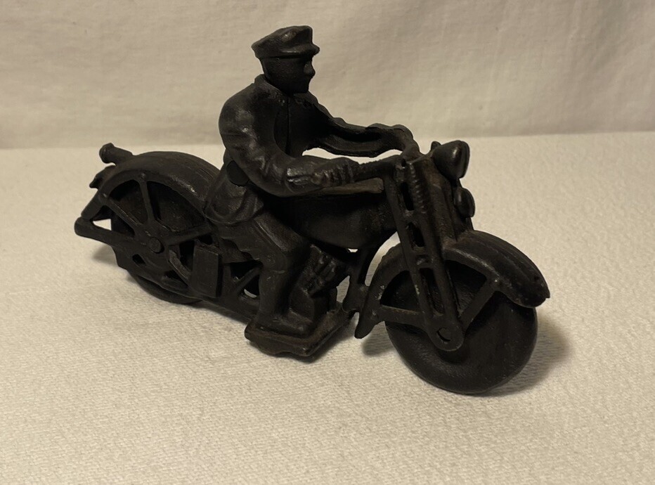 Vintage Cast Iron Patrol Motorcycle & Rider and similar items