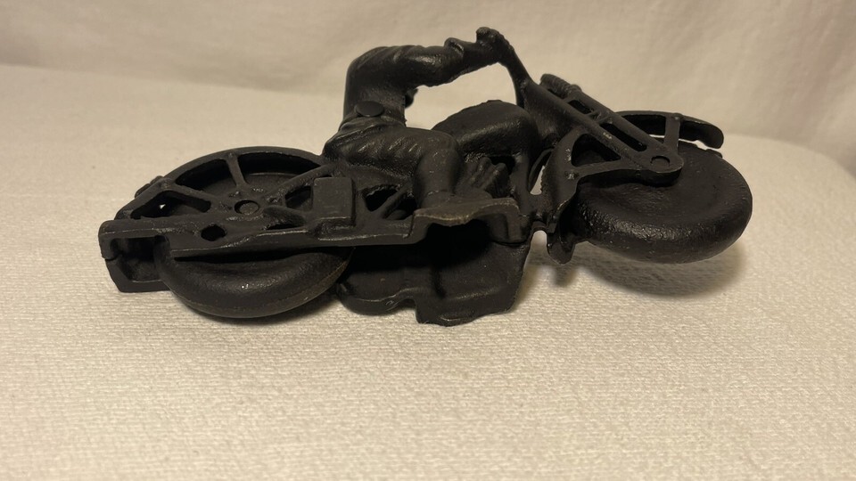 Vintage Cast Iron Patrol Motorcycle & Rider 1950’s, 6" Long 4” H