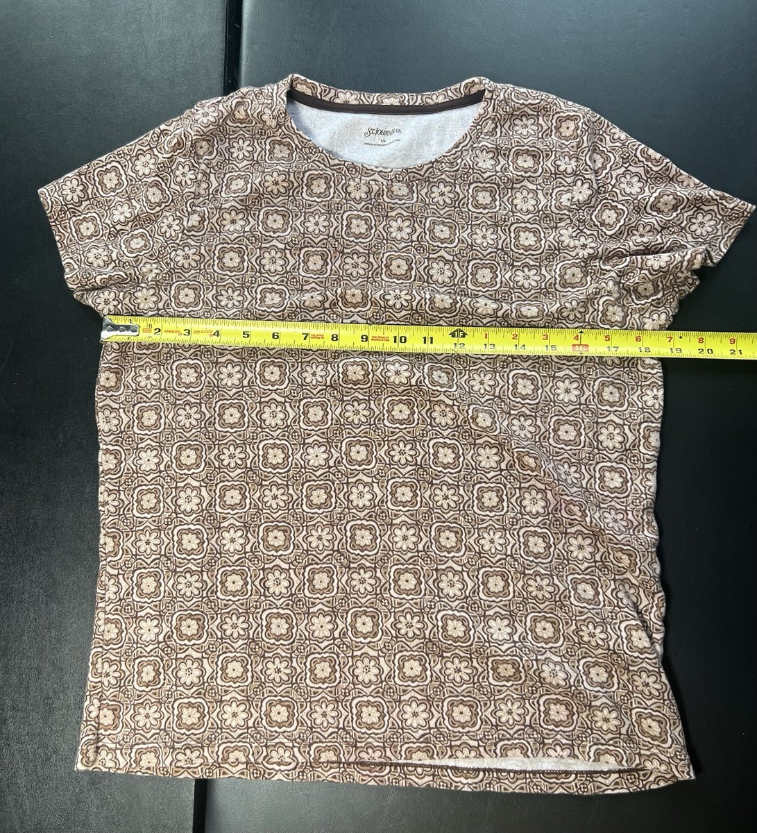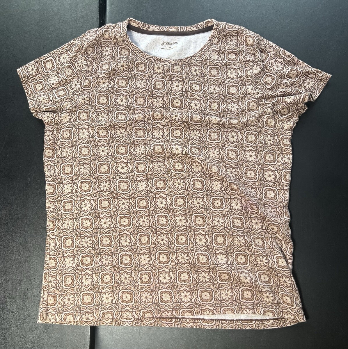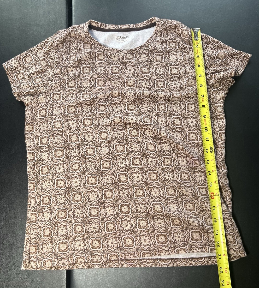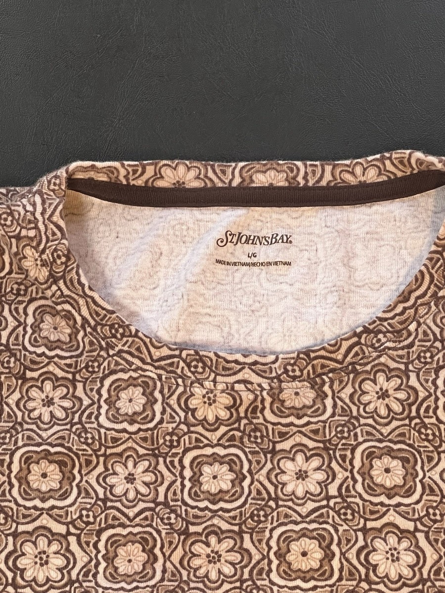 The St John's Bay Top is a women's blouse in size L and color brown. This top is designed for regular sizing and is perfect for everyday wear. The brand St. John's Bay offers quality and style, making this top a versatile addition to any wardrobe. Perfect for layering or wearing on its own, this top is a great choice for any woman looking for a comfortable and stylish option in her clothing collection.