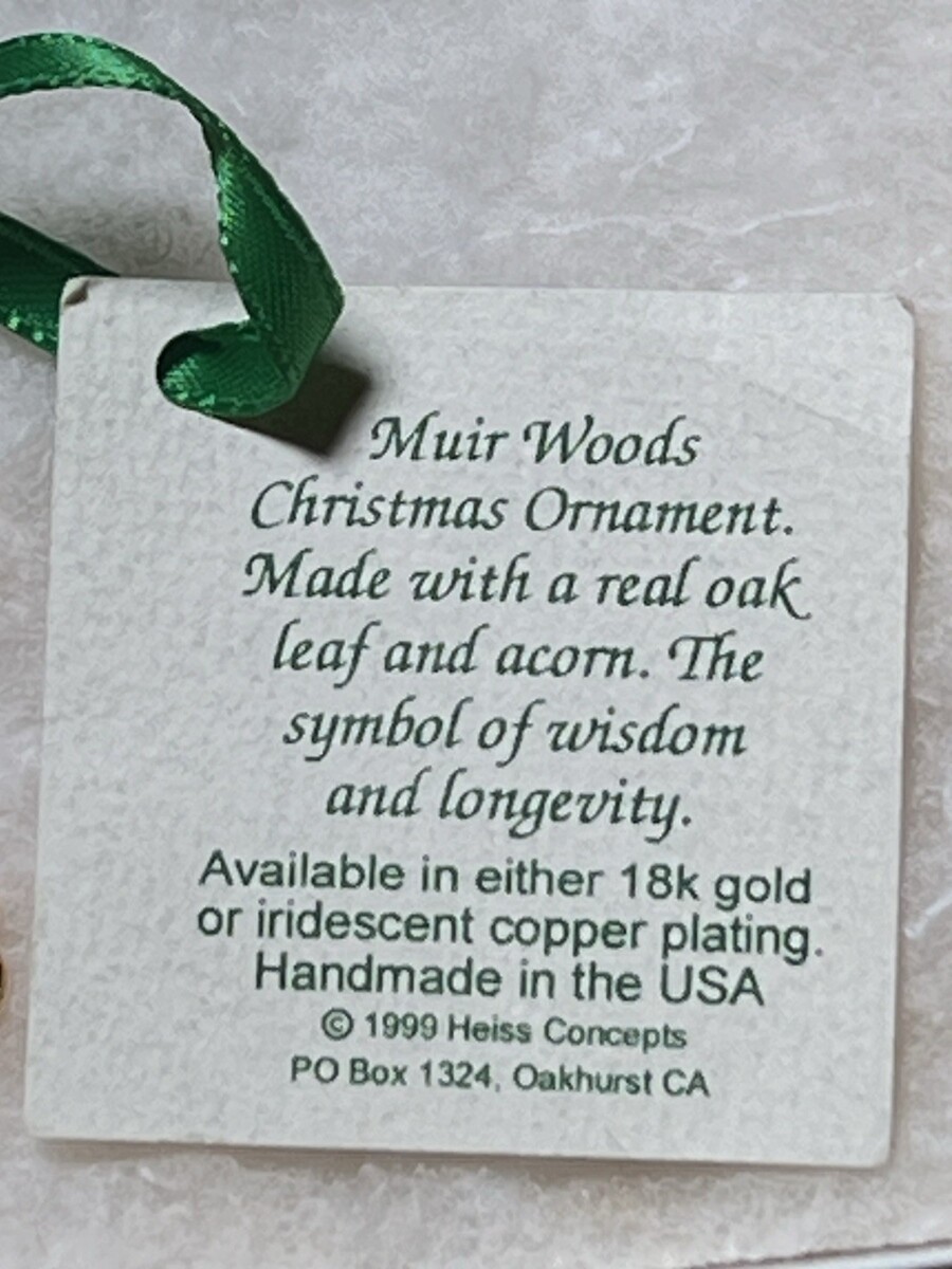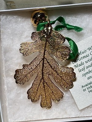 The Muir Woods Real Oak Leaf Acorn 18k Gold Ornament is a luxurious and decorative piece perfect for collectors or holiday enthusiasts. Made with high-quality materials, this ornament features a beautiful gold color and intricate oak leaf and acorn design. With its elegant design and premium craftsmanship, this ornament adds a touch of sophistication to any holiday or seasonal decor.