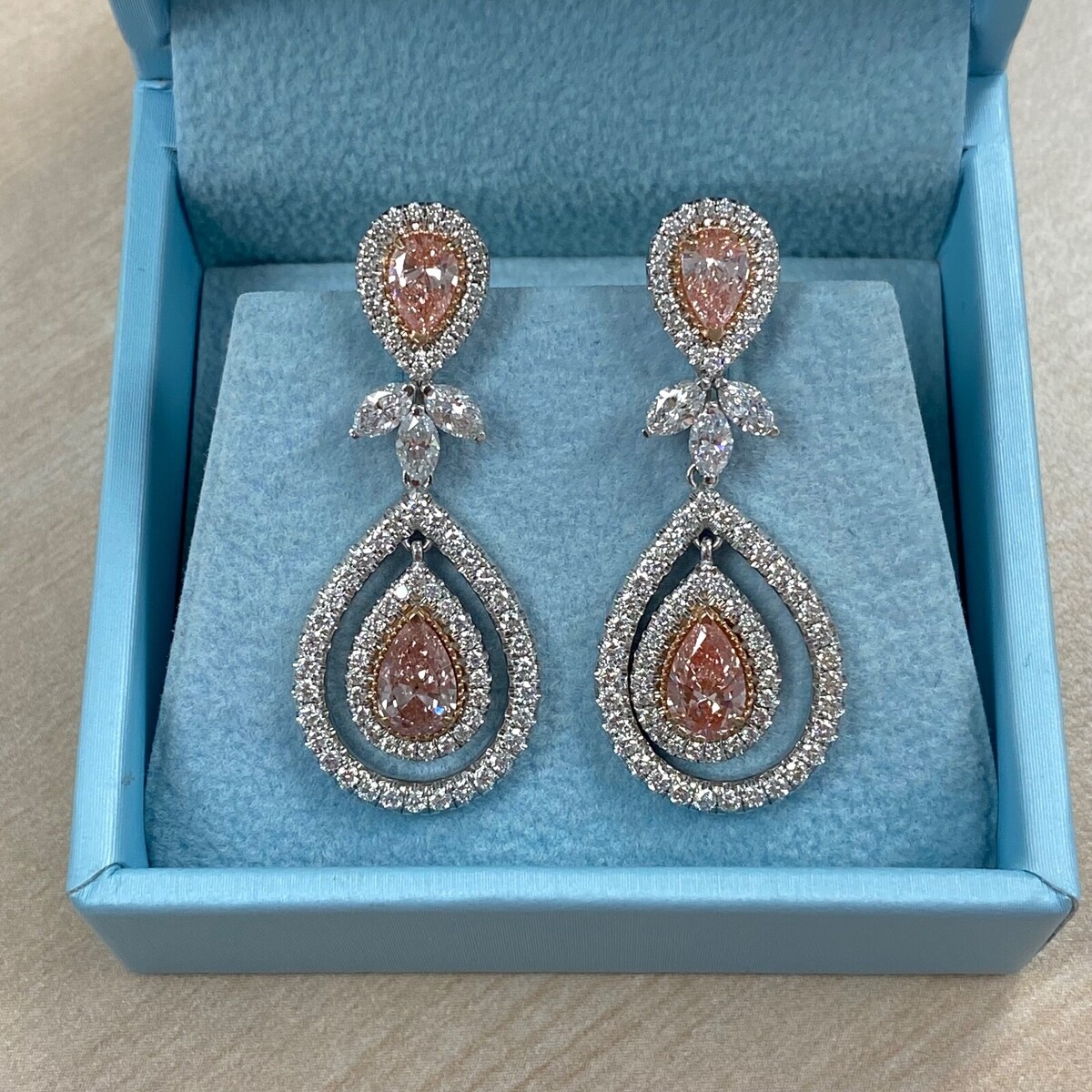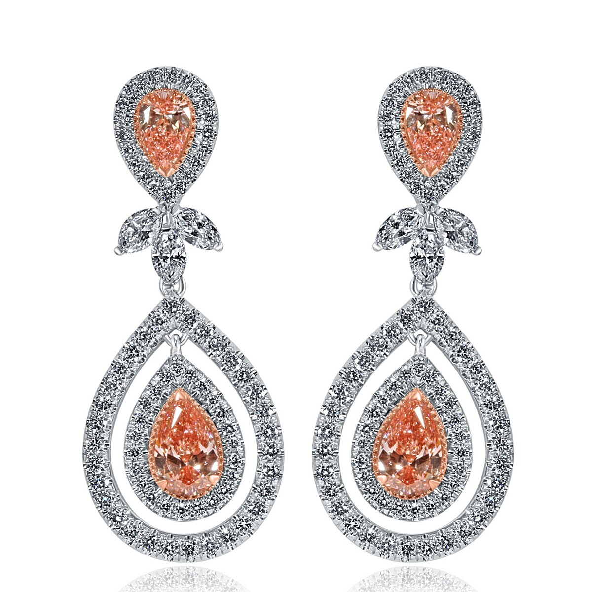 4.25 CT Pink Pear Shaped Lab Grown Diamond Drop Dangle Earrings 14k White Gold