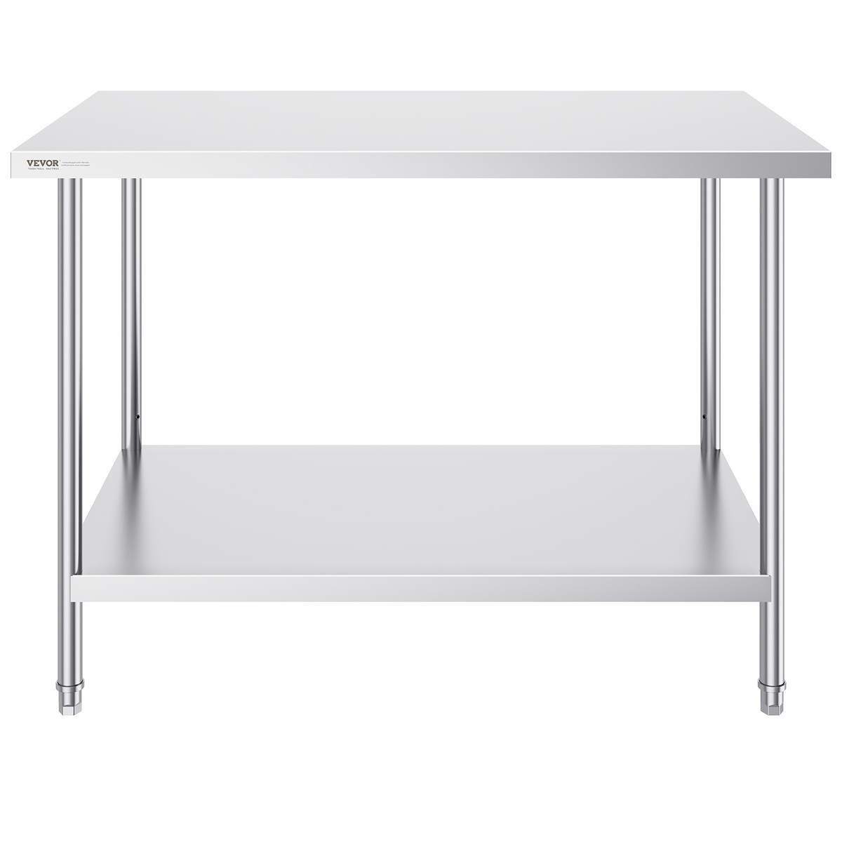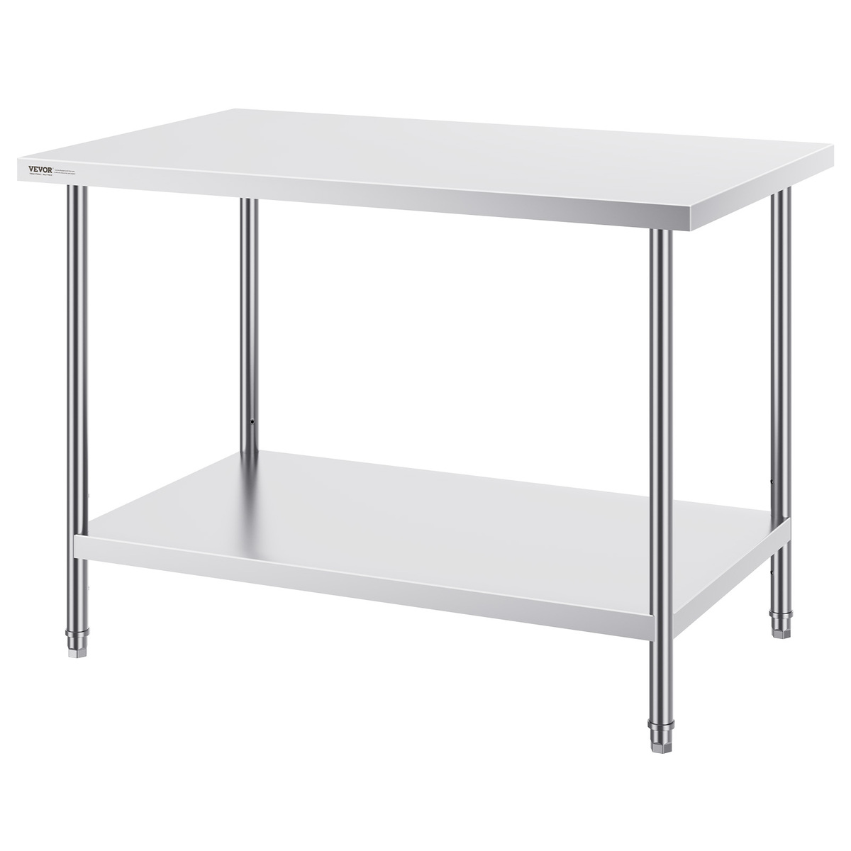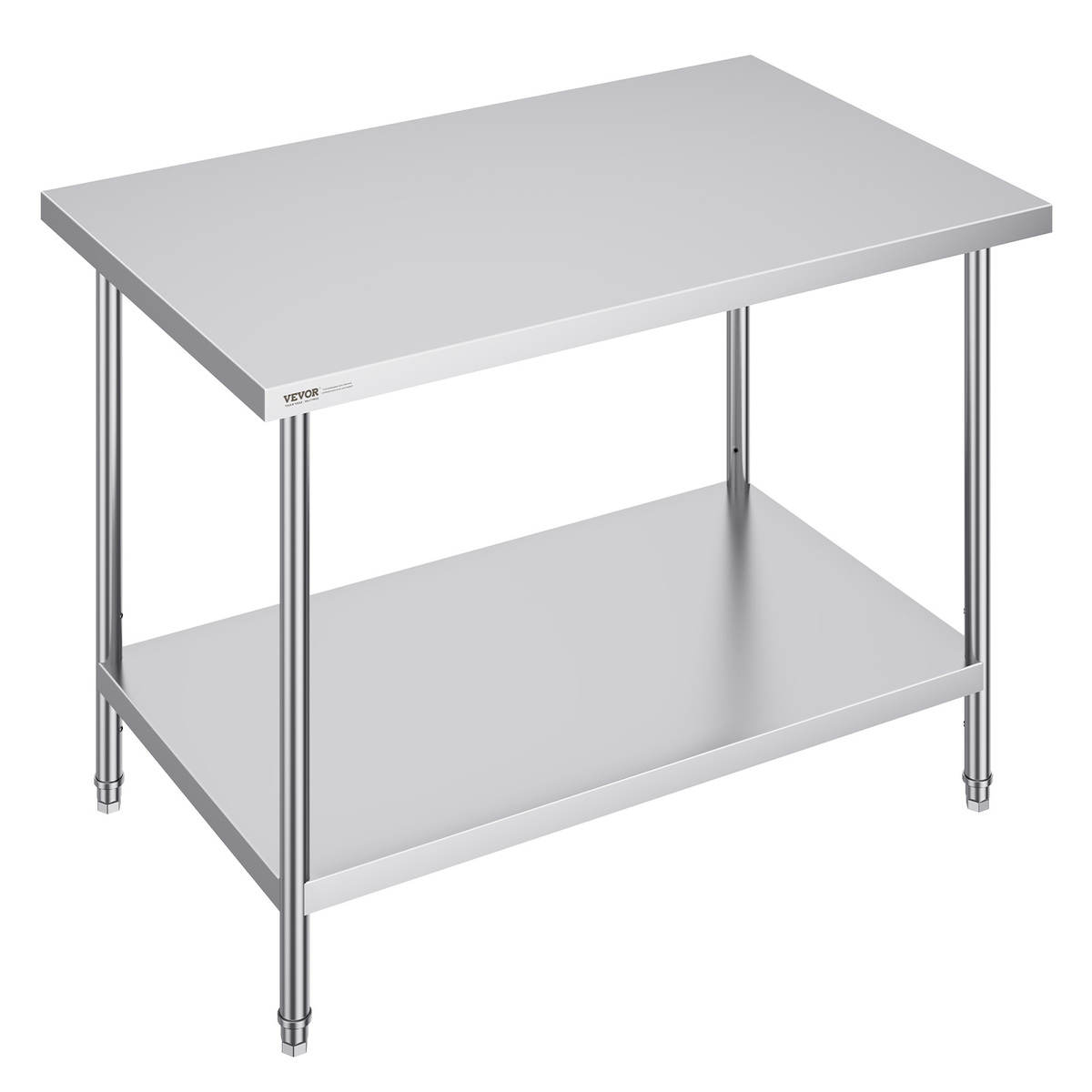 VEVOR Stainless Steel Adjustable Work Table 30x48x34 in, 2 Storeys, 880 lbs Load