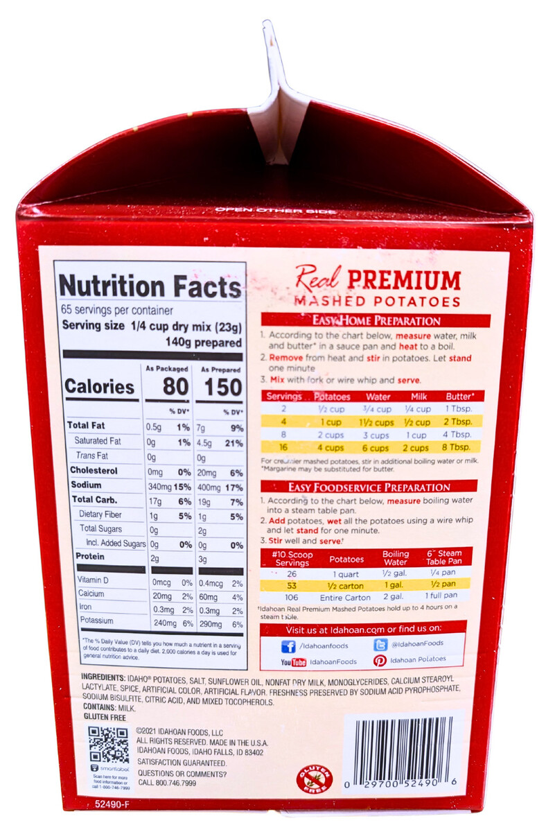 Idahoan Real Premium Mashed Potatoes 3.25 Lbs. EXP 07/2026