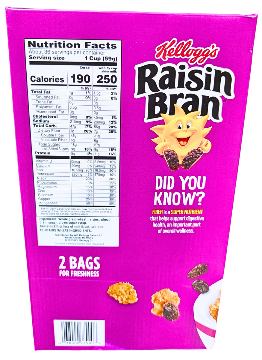Kellogg's Raisin Bran High Fiber Cereal 76.5 Oz.EXP 06/2026