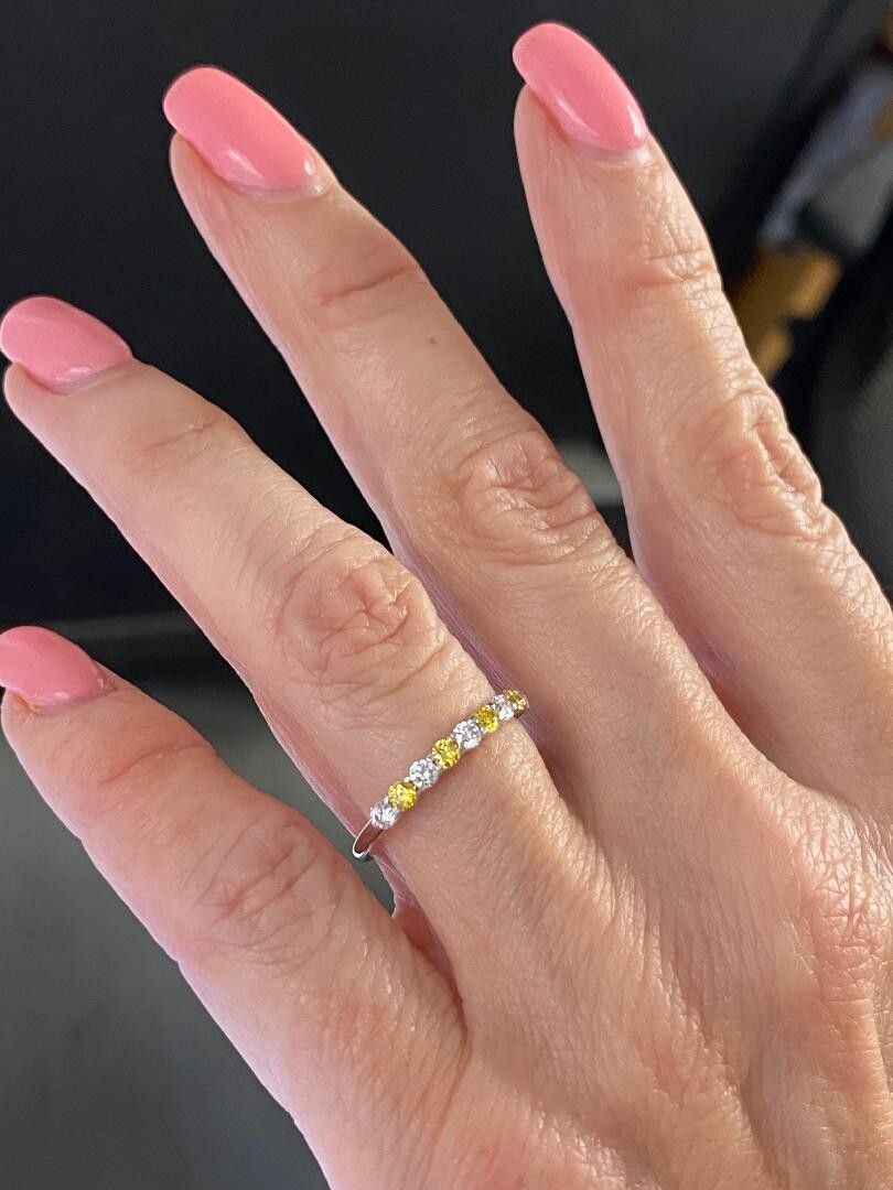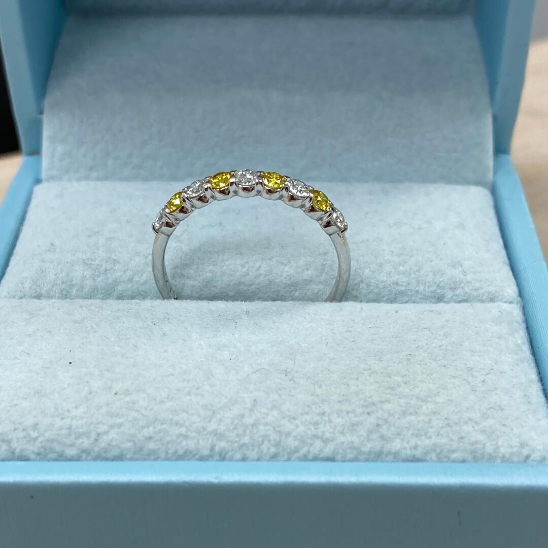 Diese Diamond Ehering ist ein schillernder Ausdruck von Liebe und Engagement !! In atemberaubendem 14K-Weißgold gefertigt und verfügt über 0,50 Karat neun runde brillante, farblose und gelbe Diamanten, die jeweils sicher in einer Ernennen gehalten werden.