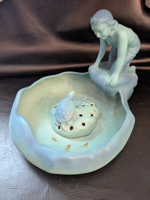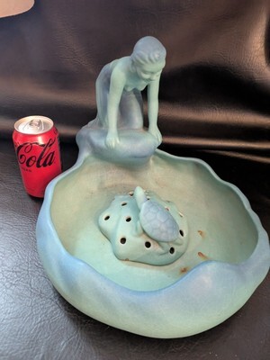 Femme Sur The Lake Bol Tortue Fleur Crapeau Van Briggle Art Nouveau Bleu Vert