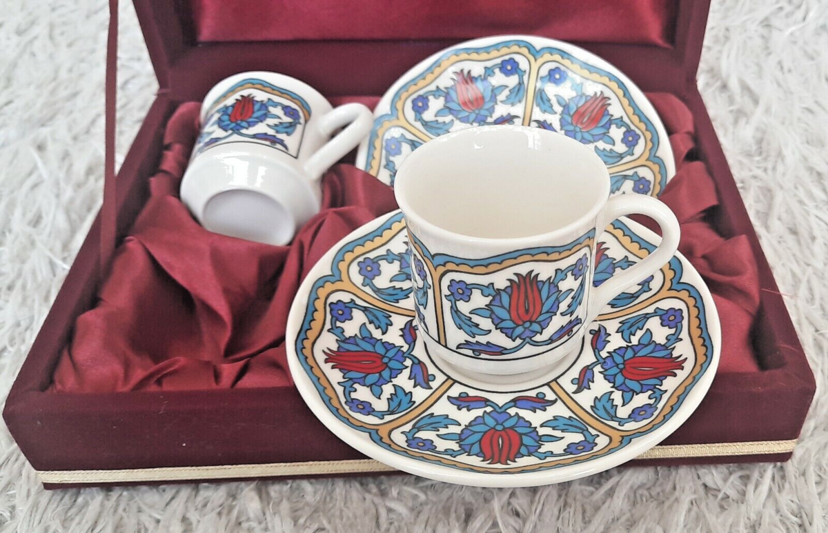 2 Cups x Kutahya Porcelain Coffee Turkish Dual serving witin Special Gift Box