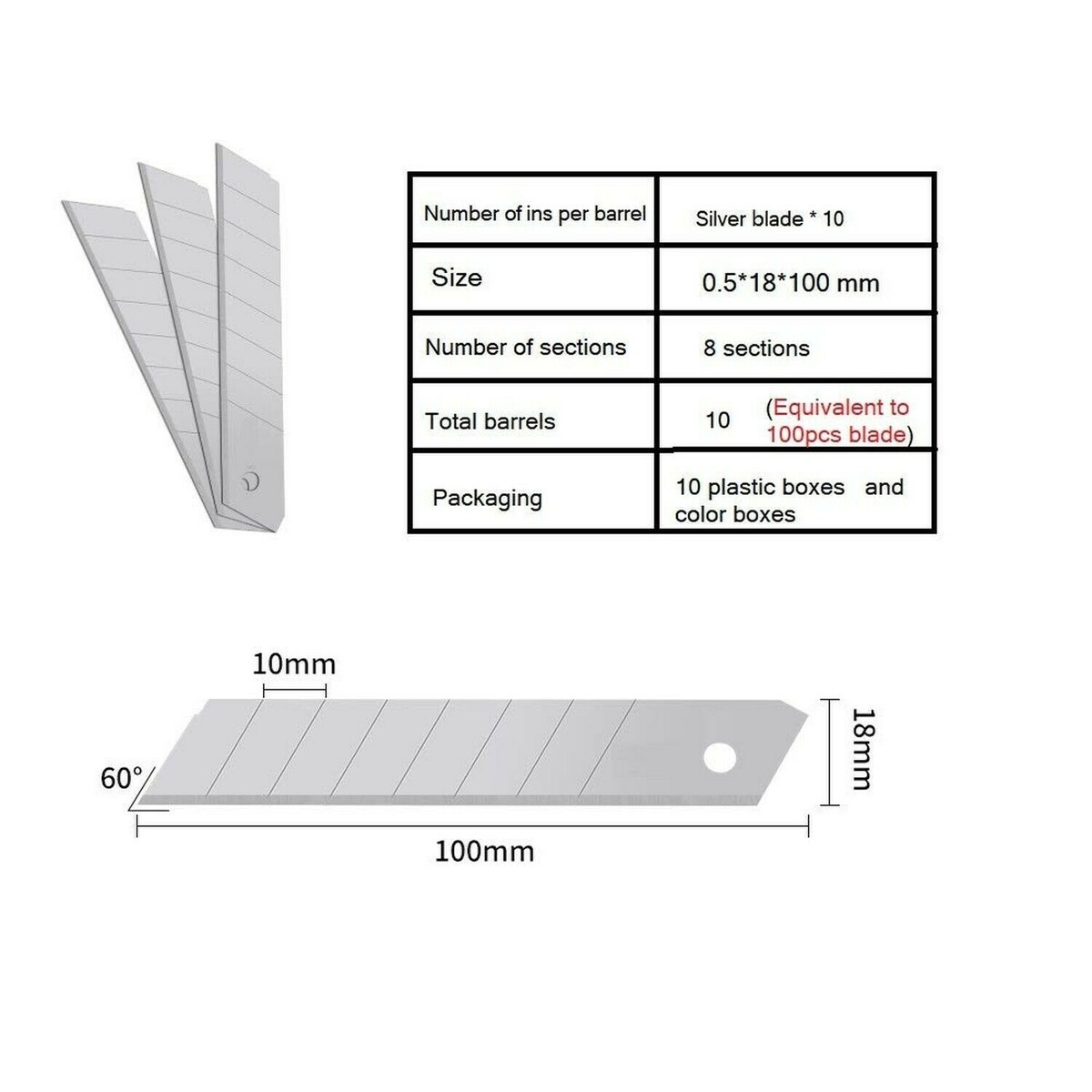 100 pcs - 18mm Large Box Cutter Utility Knife Replacment Blades Heavy Duty Razor