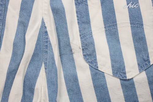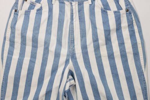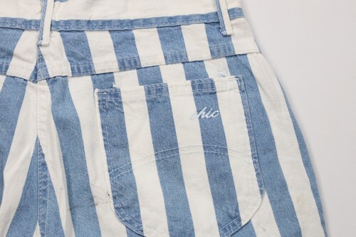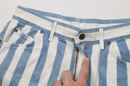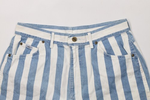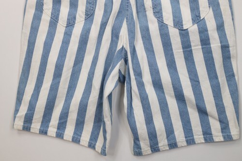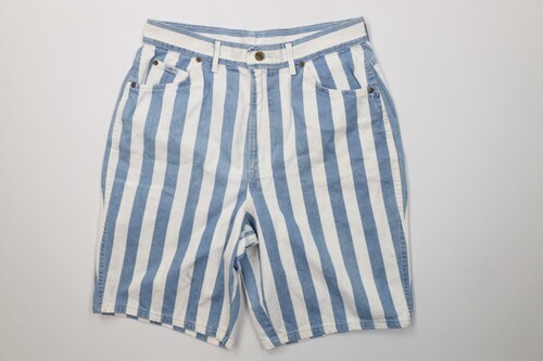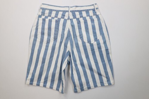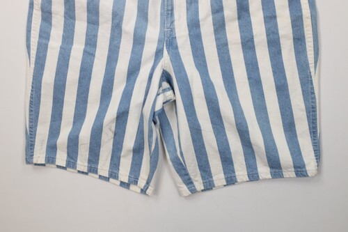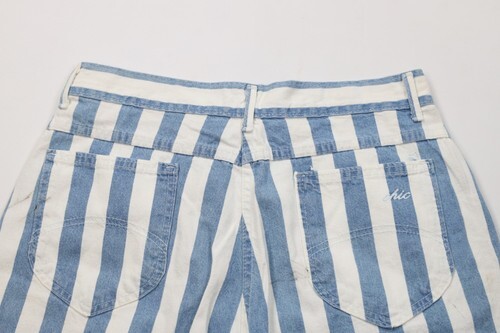 Vintage 90s Streetwear Womens 16 Distressed Striped Color Block Denim Shorts USA