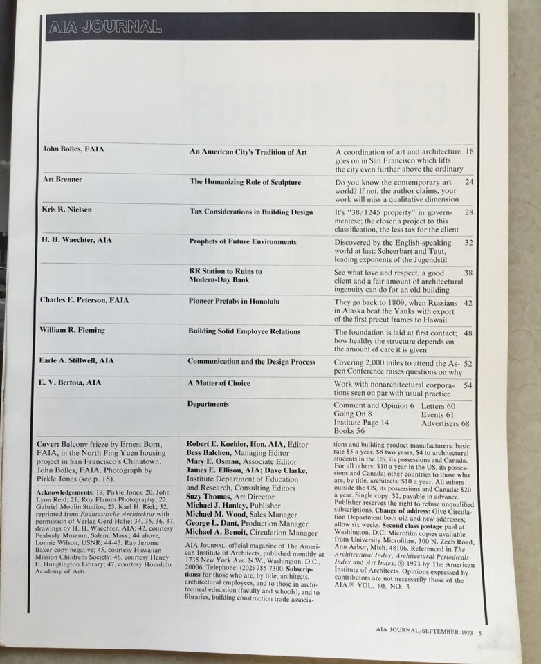 AIA Journal September 1973. Monthly publication of the American Institute of Architects. Ex-library in good condition. See pictures for table of contents. Feel free to email with questions. I do combine shipping on multiple purchases. Have a great day!