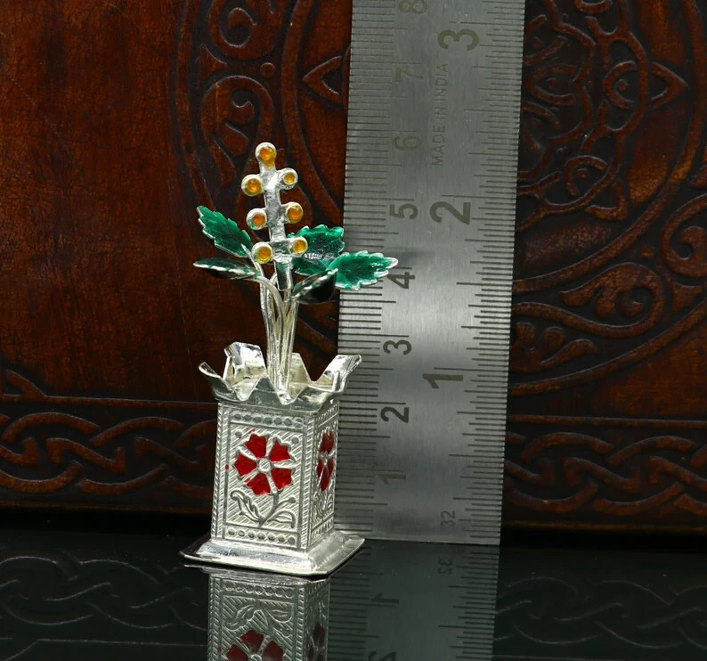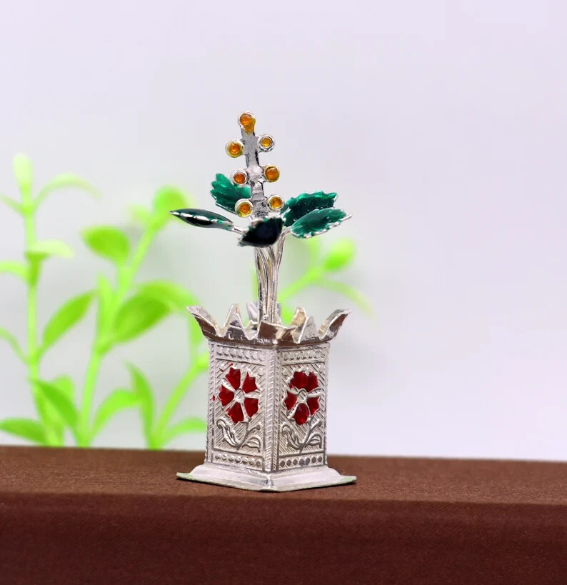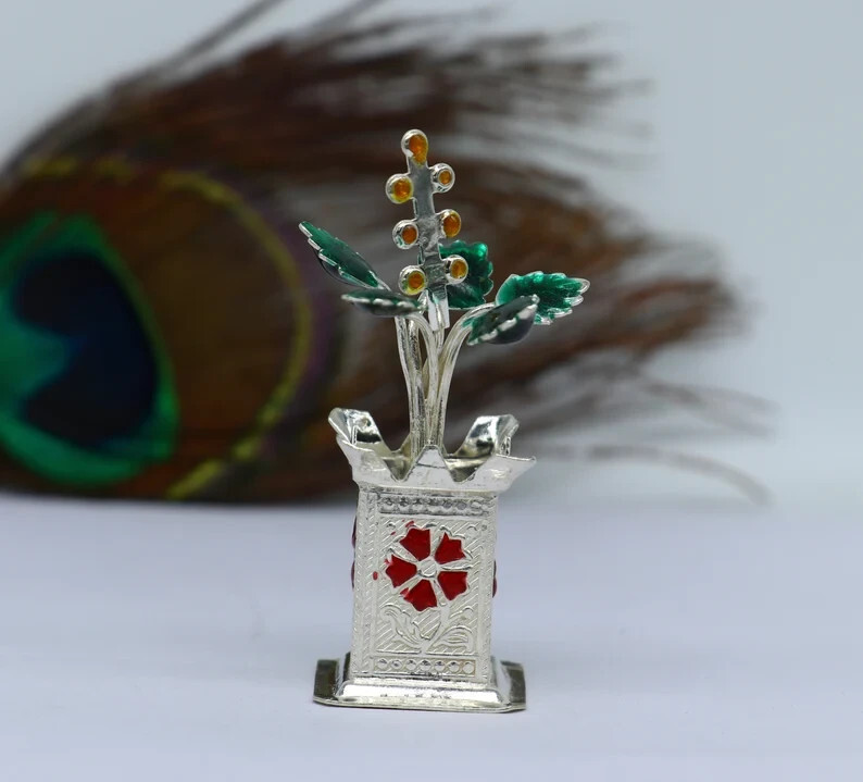925 sterling silver puja utensils, silver basil rosary mini tulsi plant su232