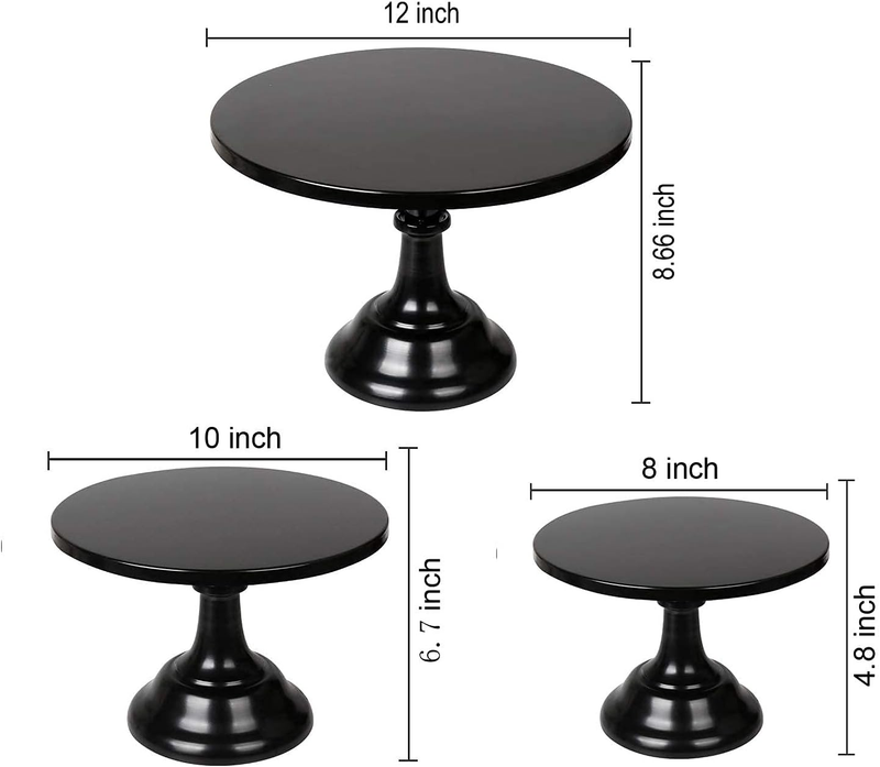 ?PACK OF 3 SET?Package includes: 3 sizes cake stands 8inch, 10inch, 12inch, suitable for displaying beautiful cakes, cupcakes, pastries, muffins, biscuit appetizers or other delicious dishes!