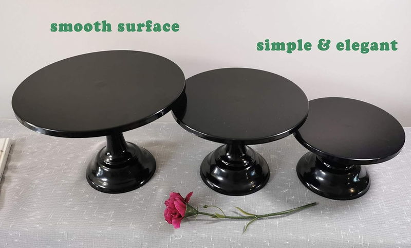 ?SIMPLE DESIGN?Luxury black dessert display , stylish carved hard base and a perfect center column, simple and generous round tray. Easy to install and disassemble, wash easily and totally reusable,you can use the cake stands every time party;