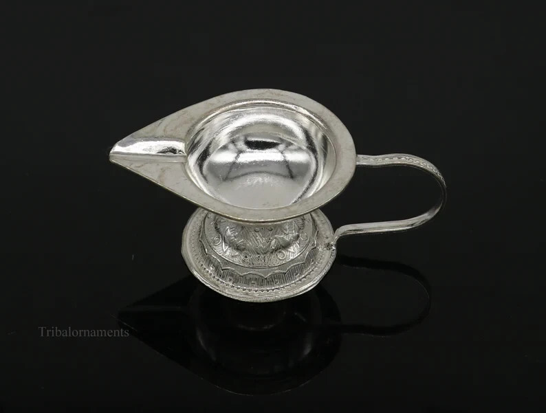925 sterling oil lamp, silver home temple utensils, silver diya, deepak su413